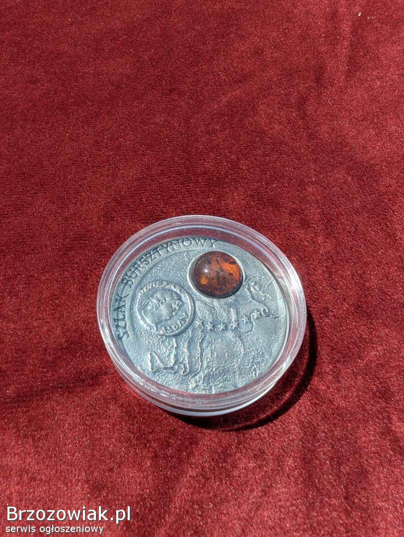 Sprzedam srebrną, oksydowaną z bursztynem monetę 20 zł Szlak Bursztynowy 2001. Stan idealny