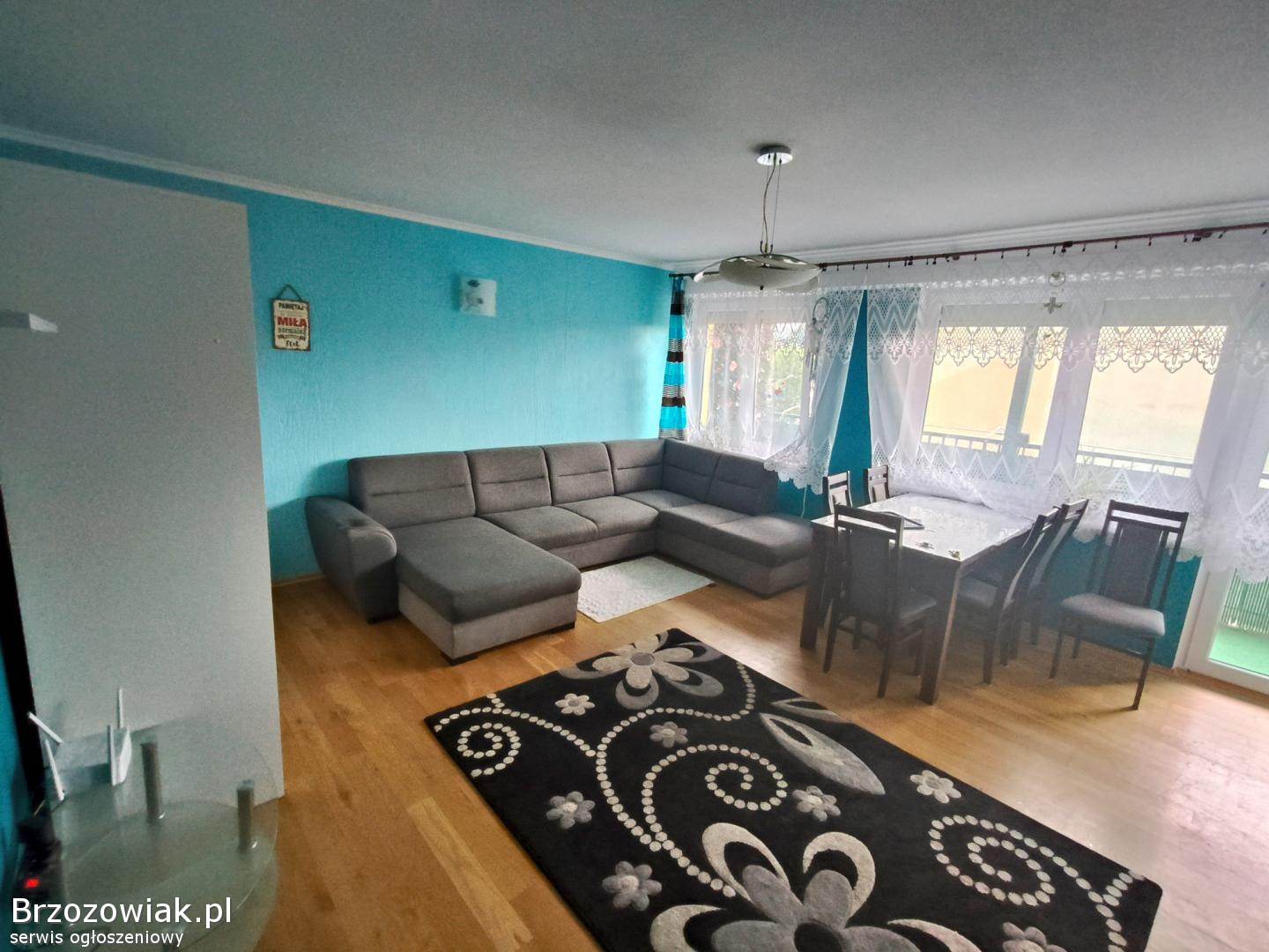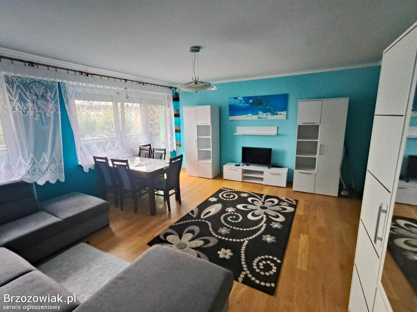 Opłaty: wynajem 1800 zł + czynsz(uzależniony od ilości osób) + prąd + gaz według zużycia oraz + TV z internetem. Mieszkanie składa się z 3 pokoi w tym jeden jako salon, kuchni oraz z oddzielnej łazienki i ubikacji. Posiada loggie około 8 M2, oraz rolety zewnętrzne. Mieszkanie w pełni wyposażone w sprzęt AGD oraz RTV. Pod blokiem dostępny parking.