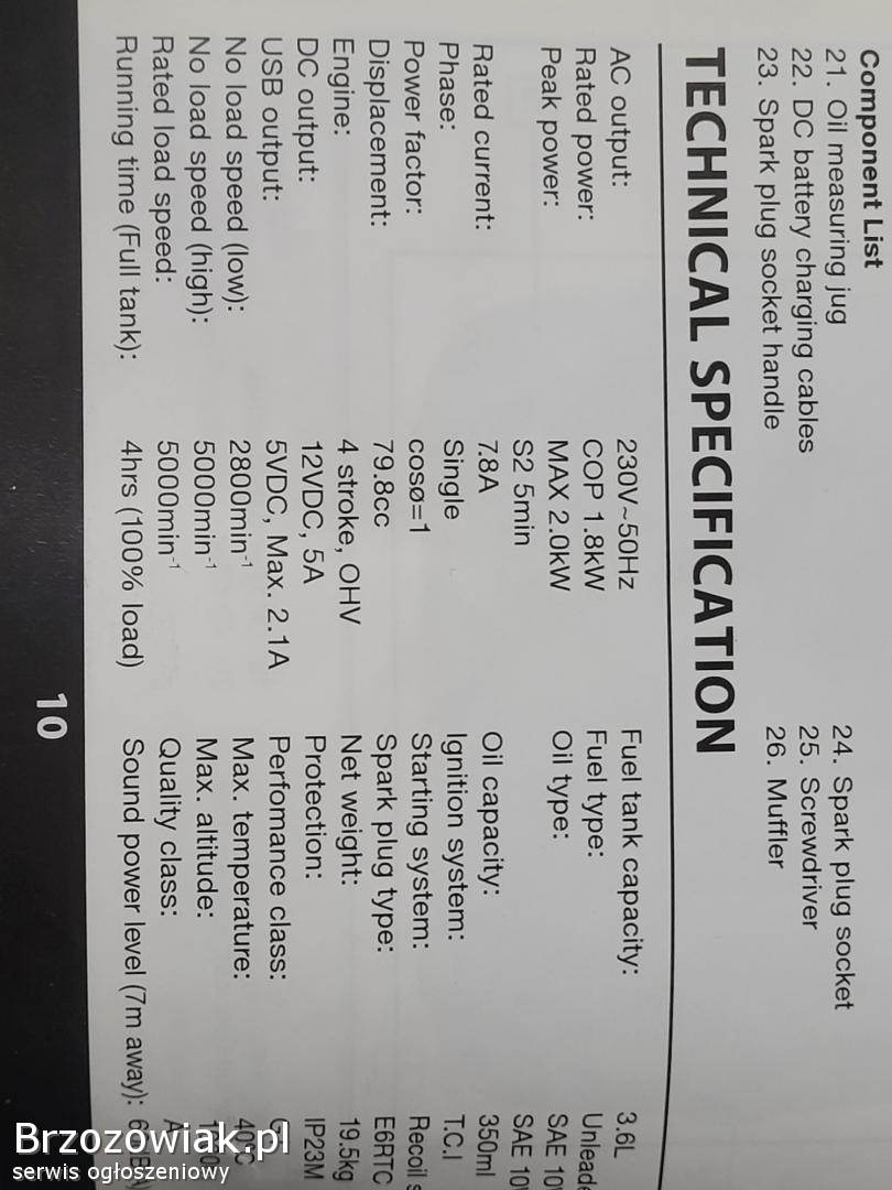 Sprzedam używany agregat prądotwórczy IMPAX IM2000SIM. Agregat w bardzo dobrym stanie - jak nowy. Jest to agregat inwertorowy, najlepszy do zasilania wrażliwej elektroniki. Parametry na zdjęciu. Mogę dowieżć do Krosna. Kontakt telefoniczny.