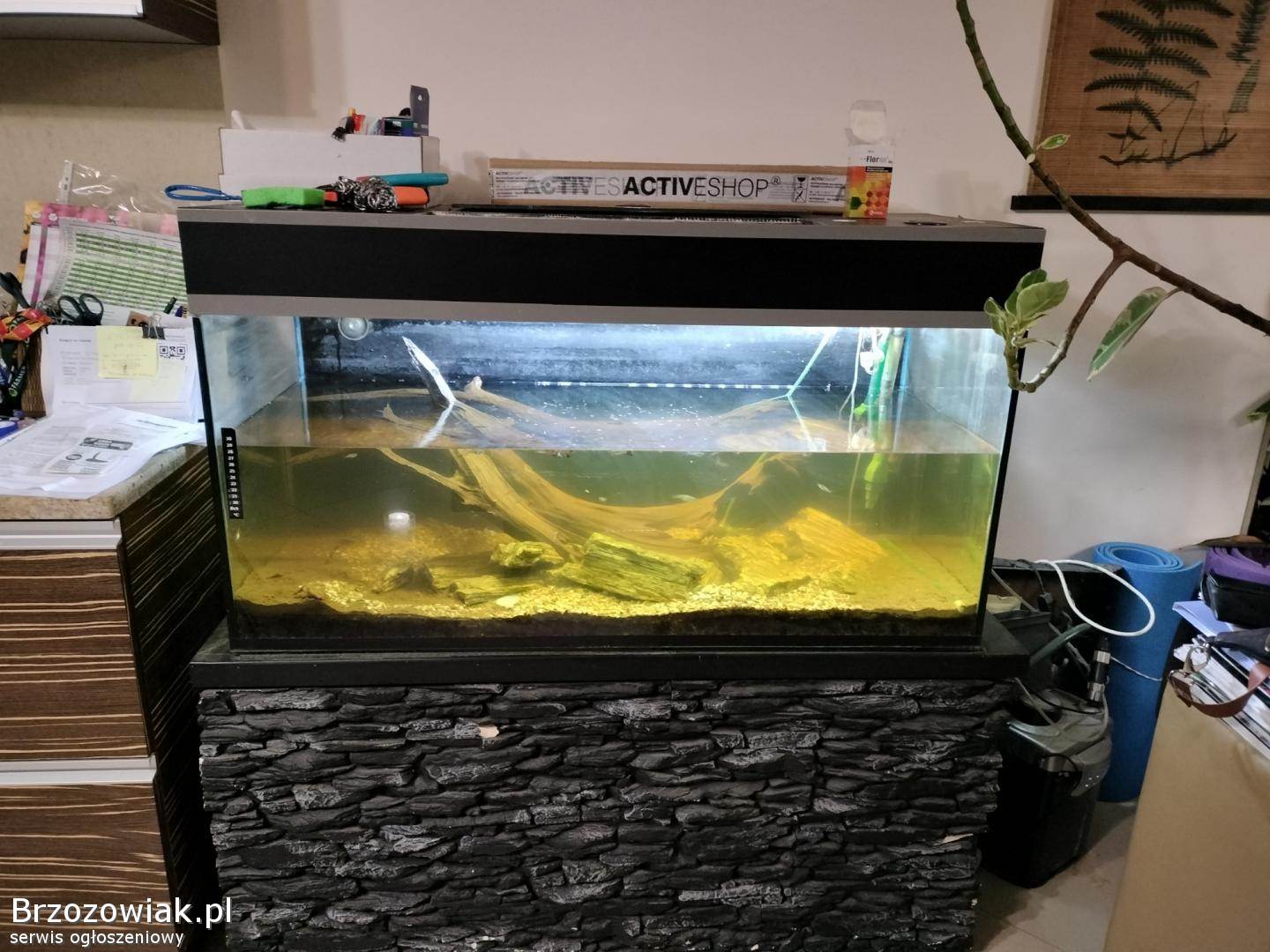 Akwaarium 300 litrów wraz z wyposażeniem i ze 100 ryb, gupiki, oświetlenie z pokrywą grzałka, butla CO2, filtr zewnętrzny stolik pod akwarium, okazja 800 zł 698. 909. 312