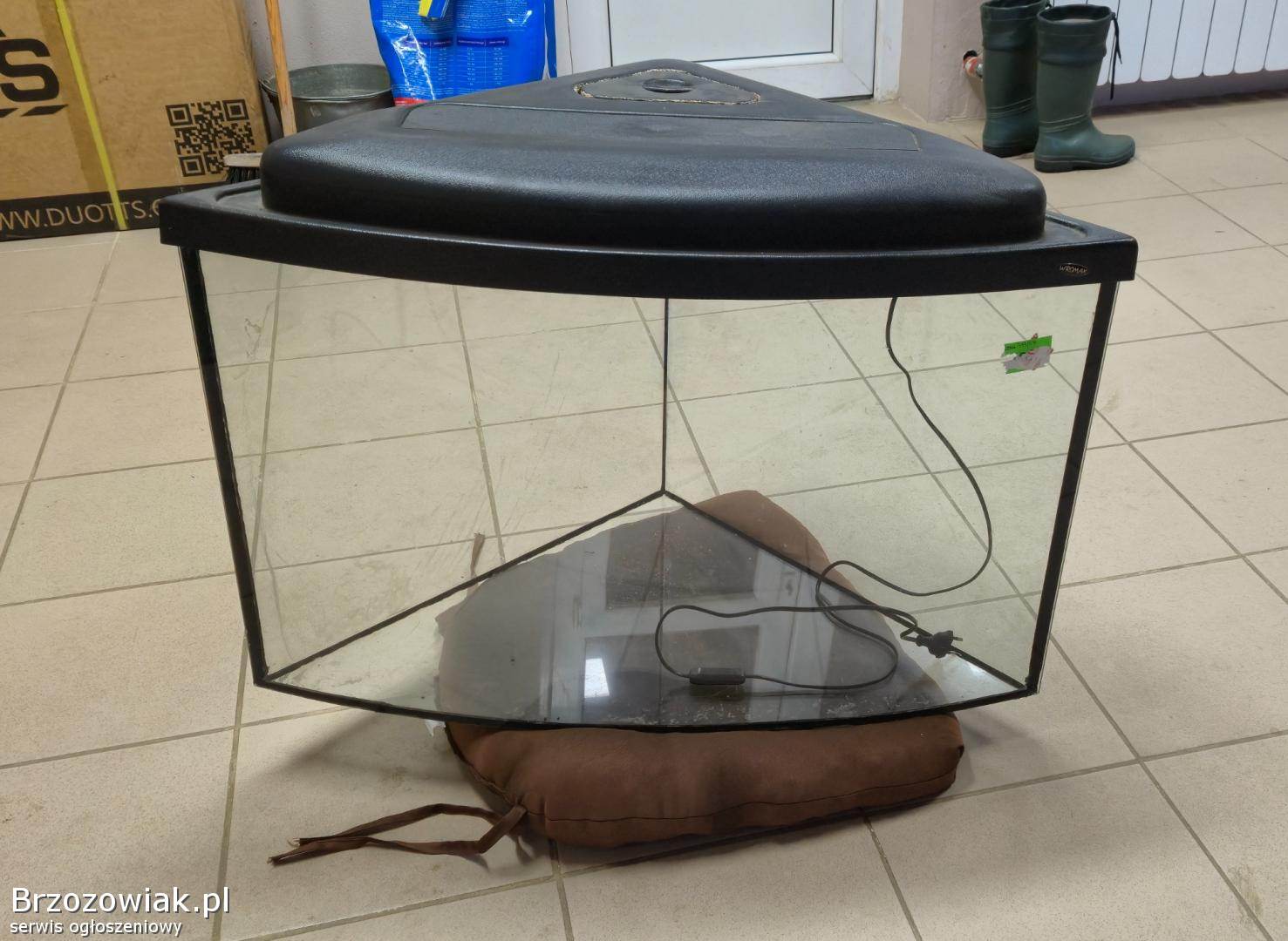 Na sprzedaż akwarium narożne panoramiczne o nowoczesnym wyglądzie, idealne do akwarium słodkowodnego lub aranżacji dekoracyjnej.