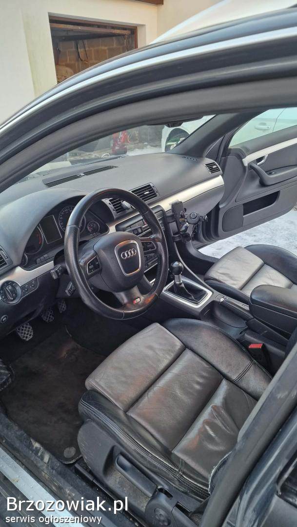 Mam na sprzedaż audi a4 b7 w najlepszej wersji w jakiej wychodziło czyli w zestawieniu pancernego silnika 1. 8t z napędem quattro. Audi w pięknym oryginalnym pakiecie s-line wewnętrznym. Samochód posiada przebieg 310tys jest świetnie utrzymany. Buda nie posiada najmniejszych oznak koryzji. Silnik suchy, nie dymi ma moc, ogólnie w bardzo dobrym stanie, auto jak na swoje lata świetnie doposazone, wymienione hamulce przód, półoś prawa, czujnik położenia wału, chlodnica, sprzegielko alternatora, w tamtym roku rozrząd. Polecam z czystym sumieniem. Odpowiem na każde pytanie. Oplaty ważne do przyszłego listopada. Posiadam opony Lato i zima