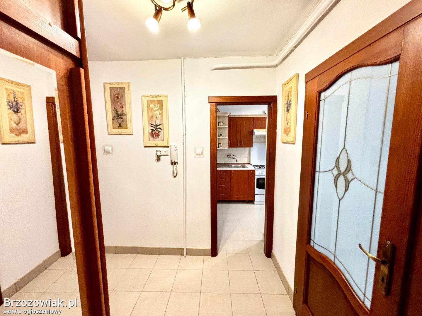 Na podłodze w pokojach parkiet, w kuchni, przedpokoju oraz łazience płytki. Okna PCV, zamykane na kluczyk.