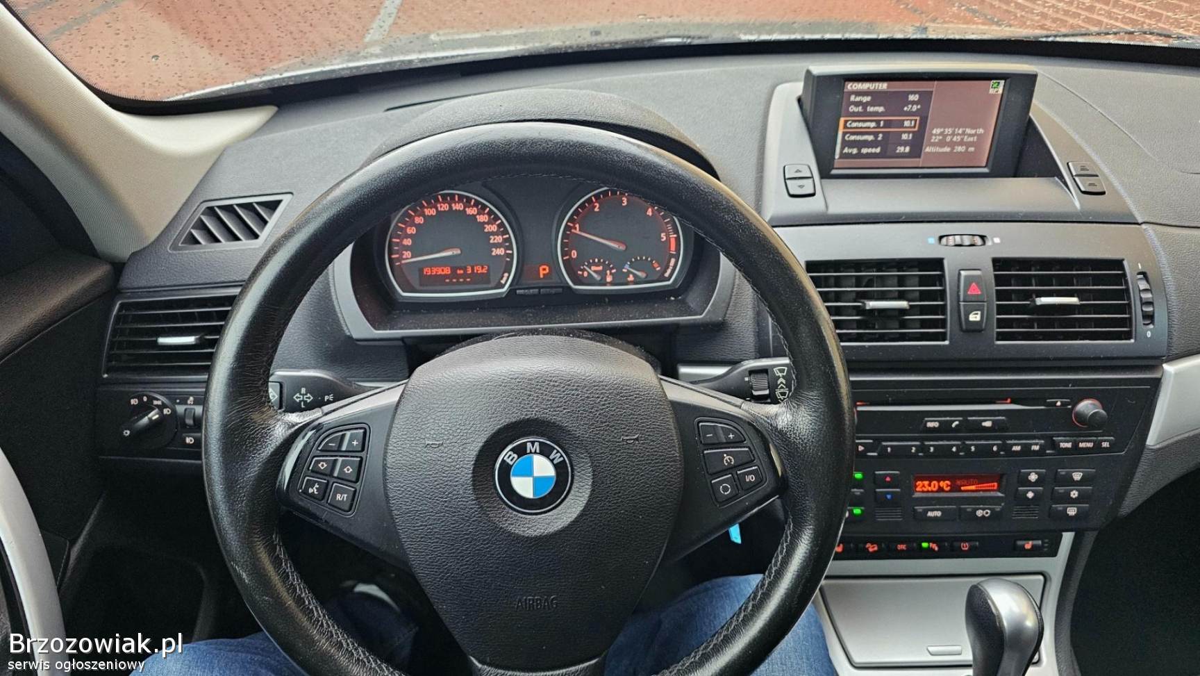 Wyposażenie tego egzemplarza BMW X3 jest bogate i obejmuje wszystko, co niezbędne dla komfortu i bezpieczeństwa. Znajdziemy tu m. in. : automatyczną klimatyzację dwustrefową, podgrzewane fotele, skórzaną tapicerkę, nawigację, tempomat, czujnik parkowania, wielofunkcyjną kierownicę oraz komplet systemów bezpieczeństwa, takich jak ABS, ASR i ESP. Dodatkowo, system audio z AUX, Bluetooth, USB i zestawem głośnomówiącym umili każdą podróż. Immobiliser i centralny zamek zapewniają ochronę przed kradzieżą.