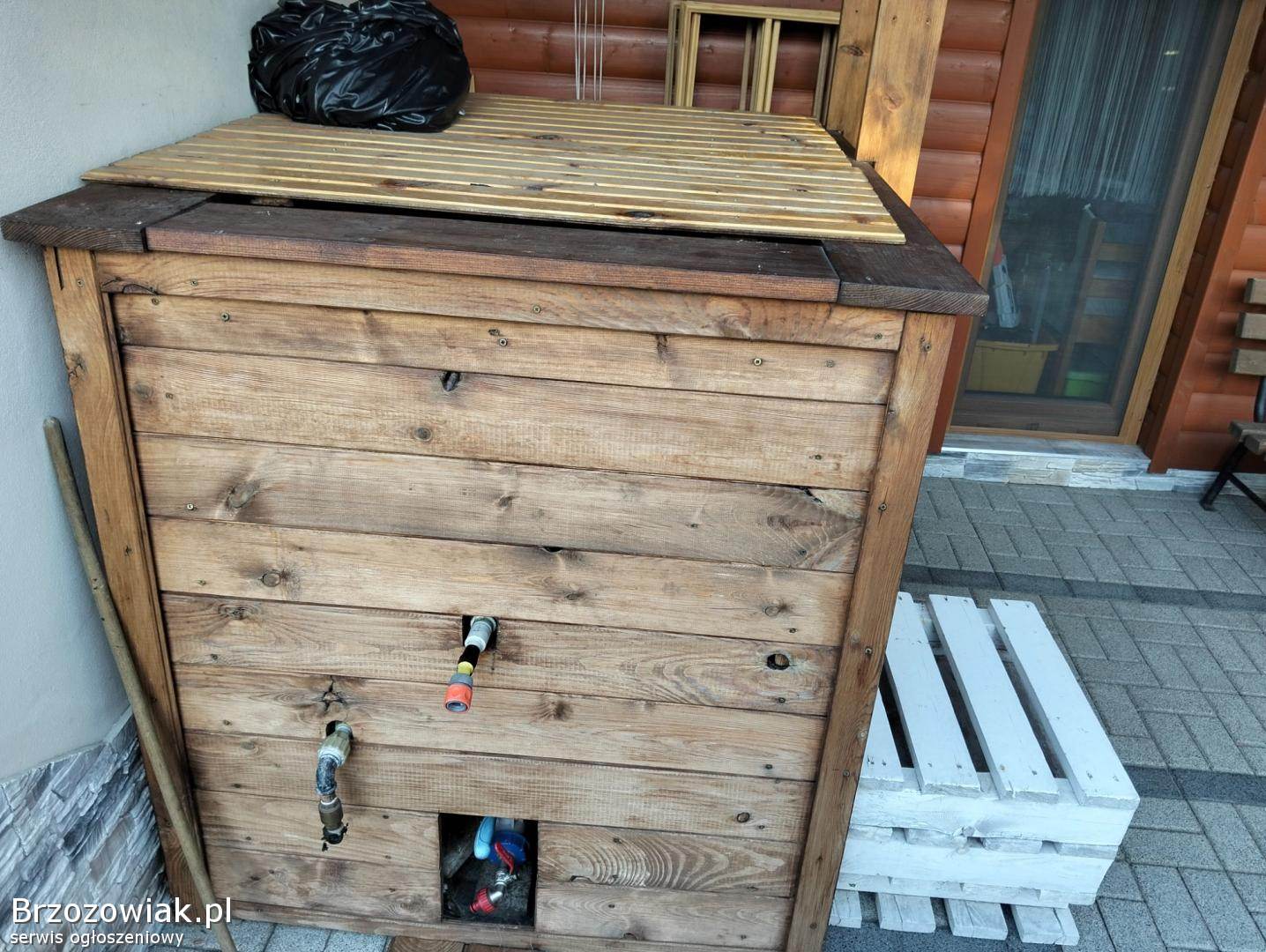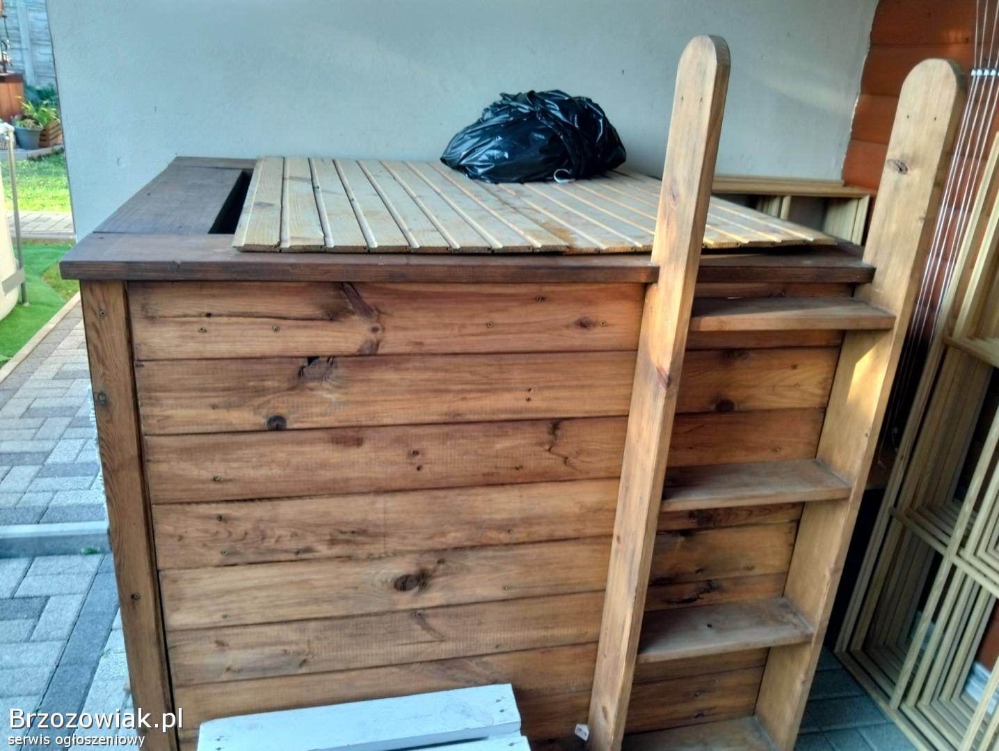 Sprzedam balie ogrodową bania do morsowania lub jakuzi z mauzera obite deską z rurą w środku do robienia bombelek z ławeczką do siedzenia. Odbiór Miejsce Piastowe. kontakt możliwość ogrzewania wody z ogniska