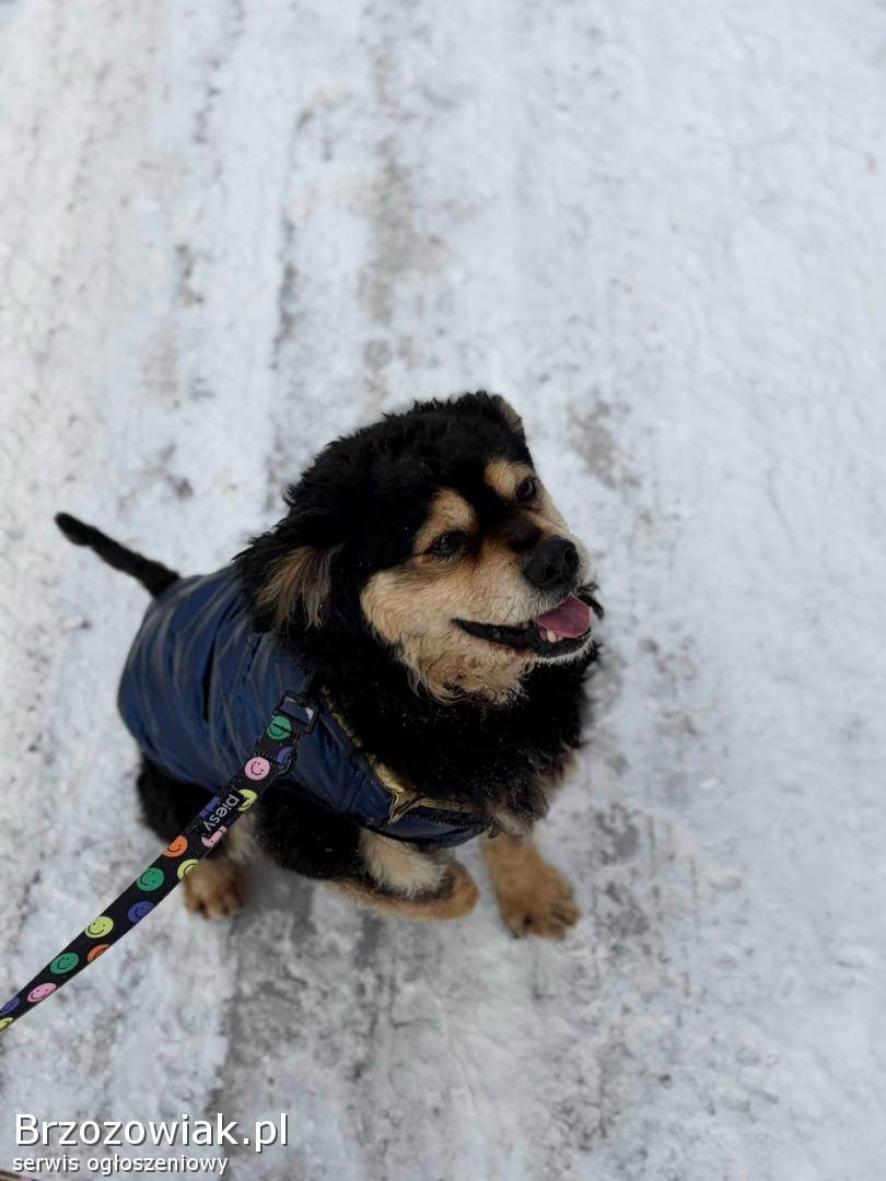 Niegdyś skołtuniony, dziś uwolniony od bólu fizycznego radośnie wita pracowników i z całego serca prosi o domek.