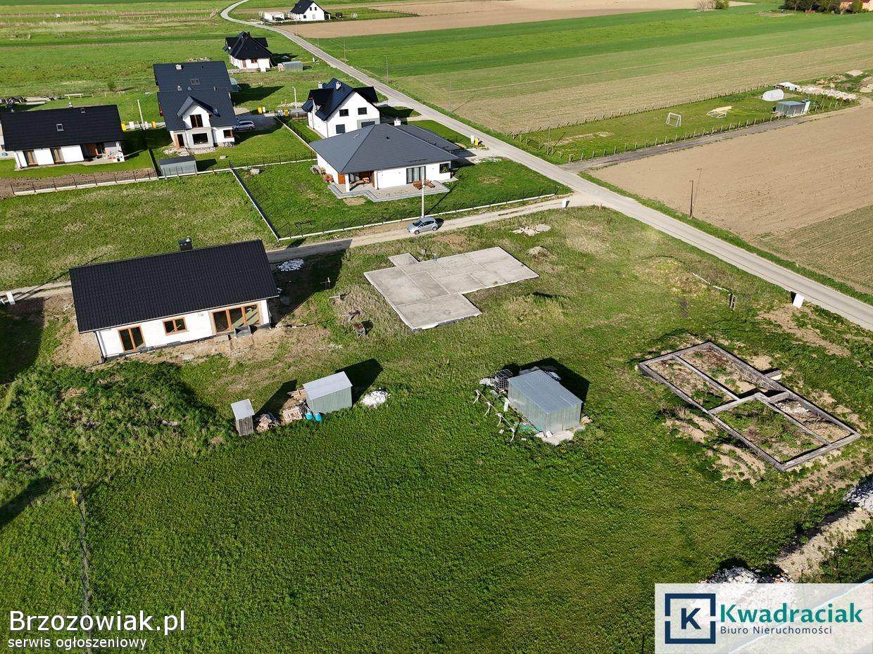 Fundamenty: Na działce znajdują się fundamenty pod budowę domu jednorodzinnego.