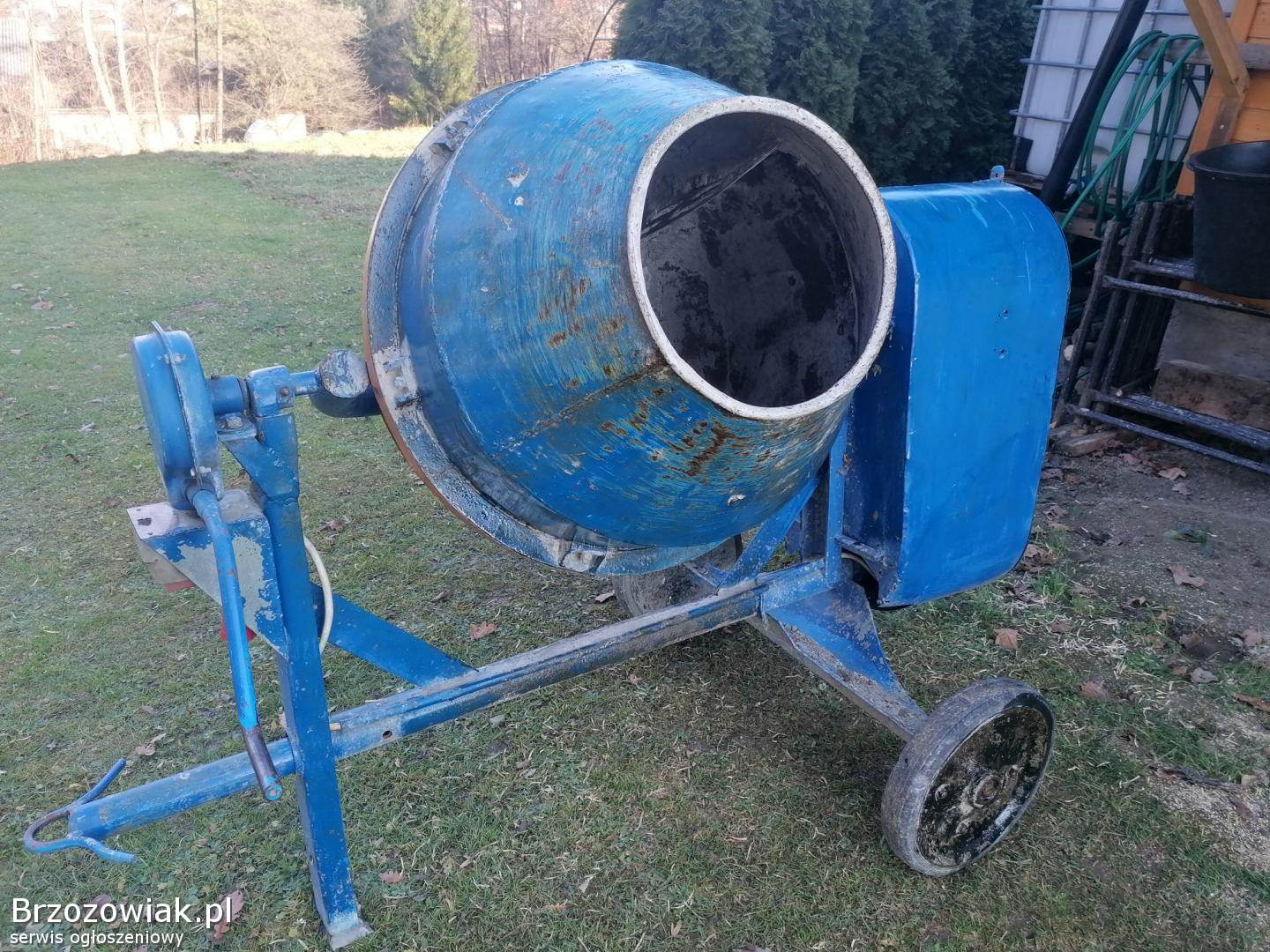 Sprzedam betoniarkę 150l, silnik 3fazowy. W betoniarce są wymienione łożyska na bębnie. Posiada włącznik zamontowany przy korbie co jest wygodne przy pracy.