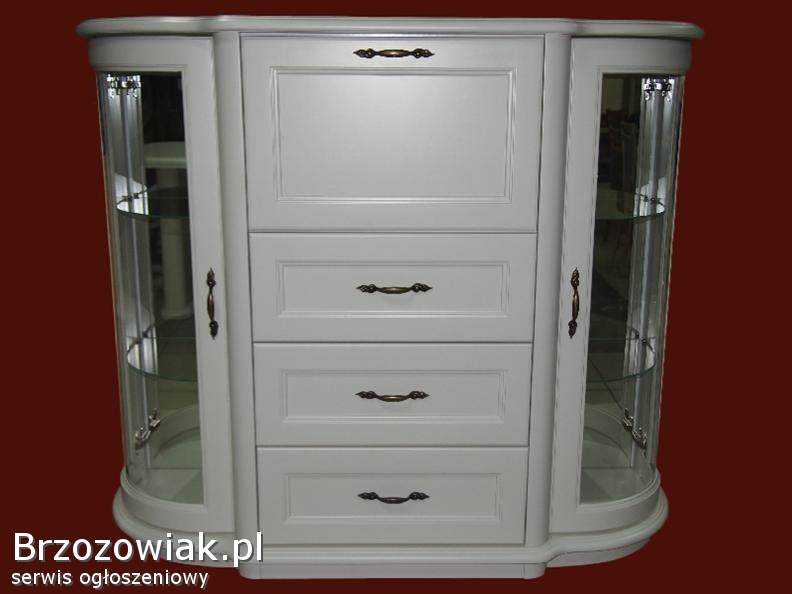 Nowy bialy barek wykonany z drewna olchowego o wymiarach 45x142x122cm
