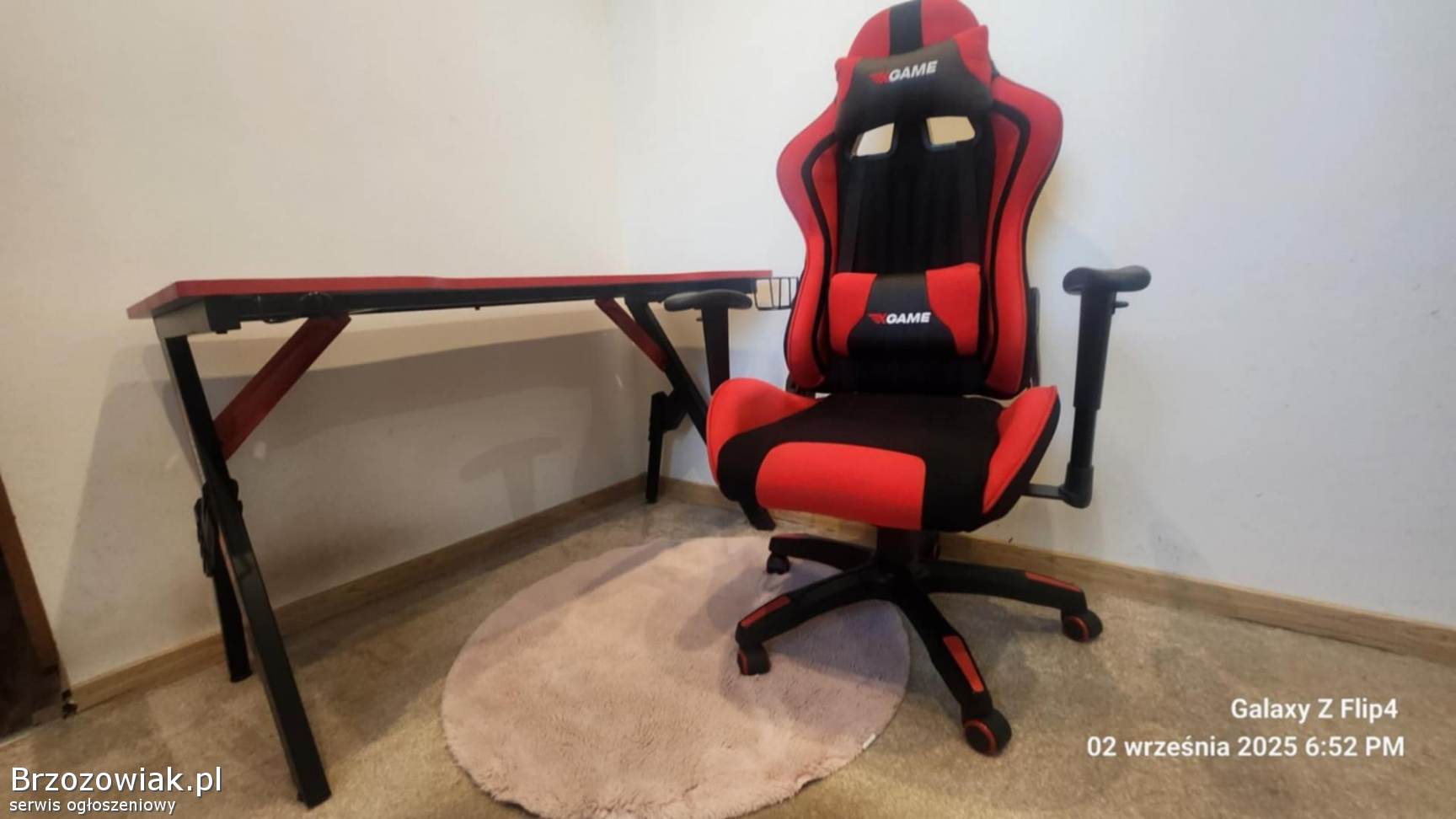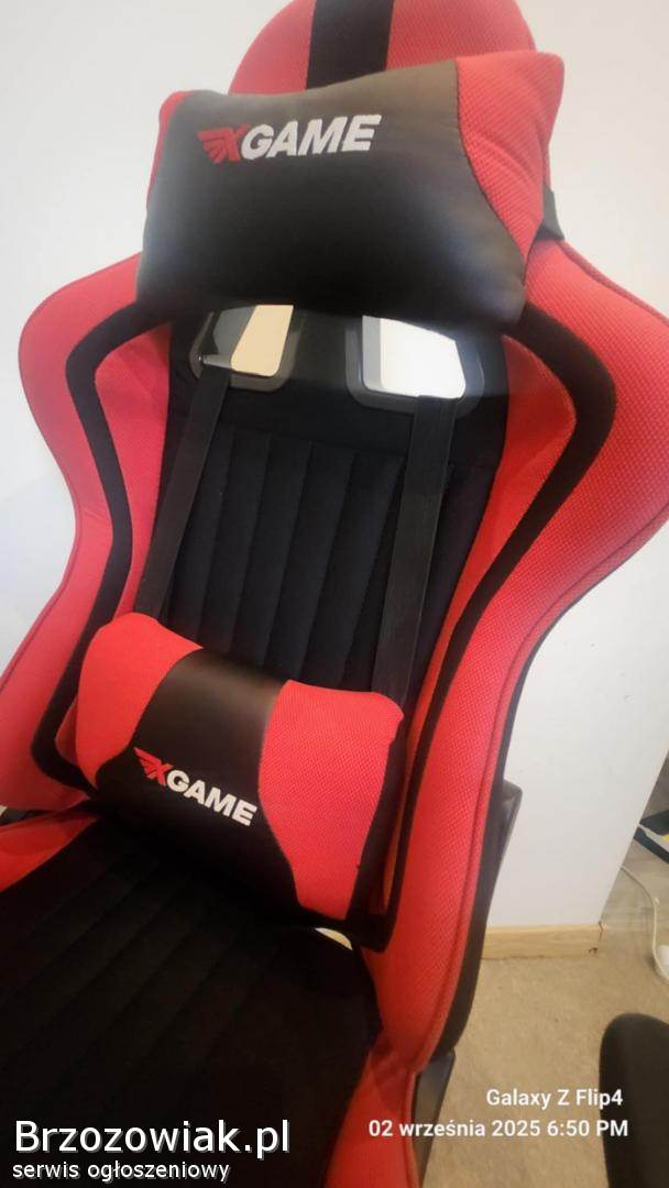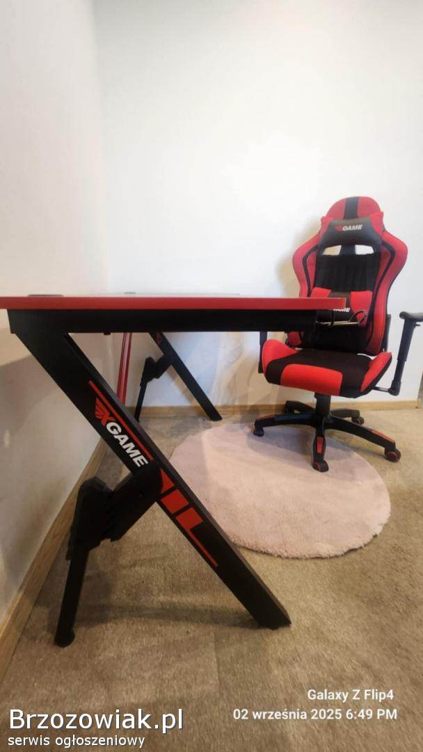 Wygodny i stylowy zestaw gamingowy składający się z czerwono-czarnego fotela gamingowego oraz dopasowanego do niego biurka. Fotel posiada regulowane oparcie i podłokietniki, zapewniając komfort podczas długich godzin spędzonych przy grach. Biurko ma solidną konstrukcję i wystarczającą powierzchnię na komputer oraz akcesoria. Zestaw jest używany, ale w bardzo dobrym stanie. Doskonały wybór dla graczy poszukujących wysokiej jakości sprzętu.