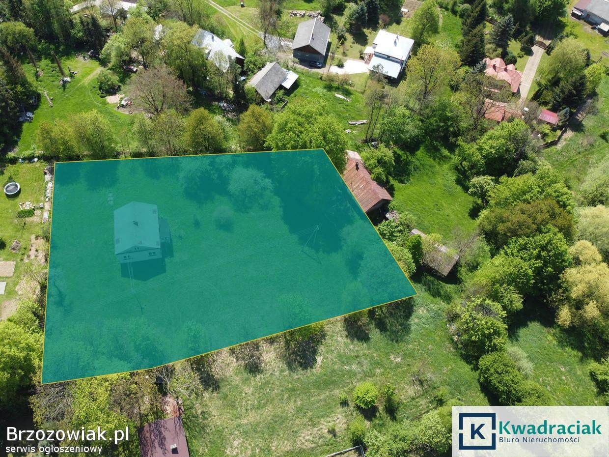 Przestronna, ogrodzona działka z licznymi nasadzeniami drzew, zapewniająca kameralny klimat i naturalną osłonę od otoczenia.