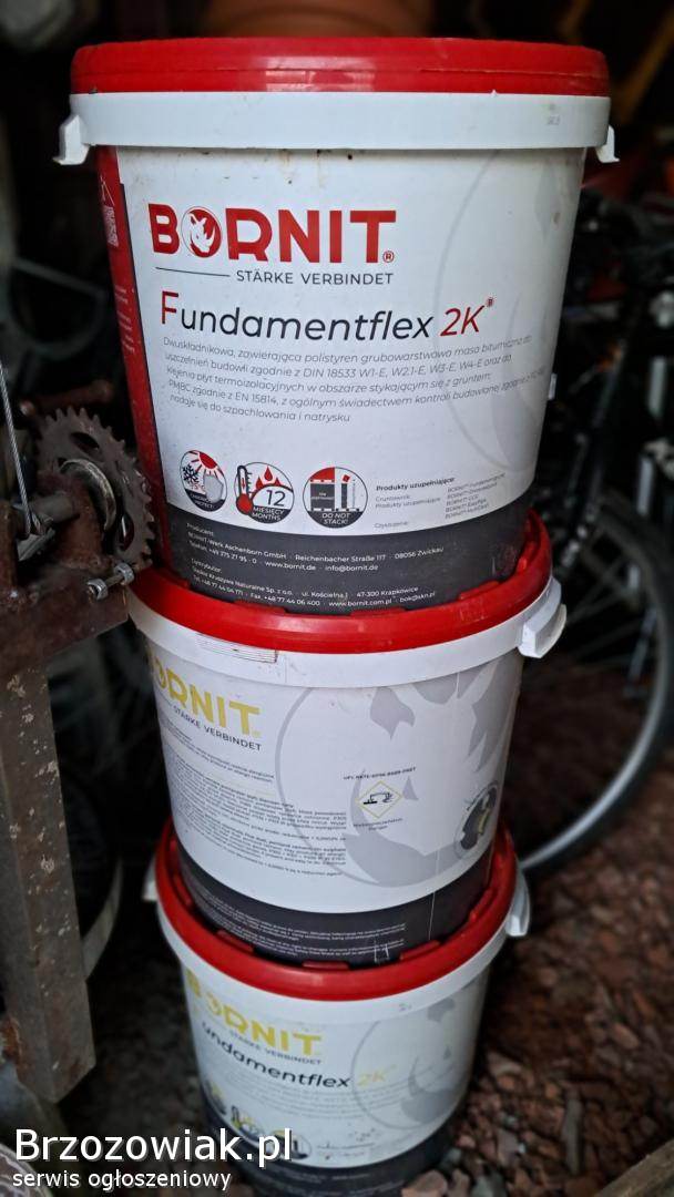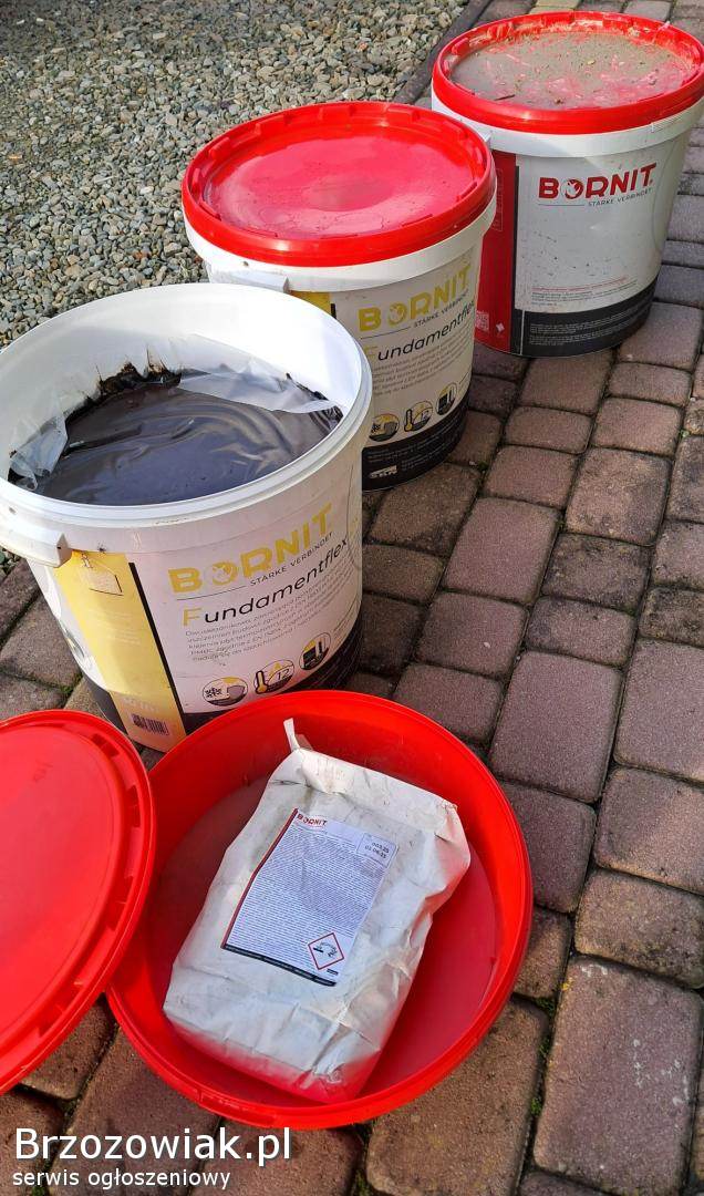 Sprzedam pozostałości po budowie. 3 wiadra po 30l Bornit fundamentflex 2k. 100zł za wiadro.