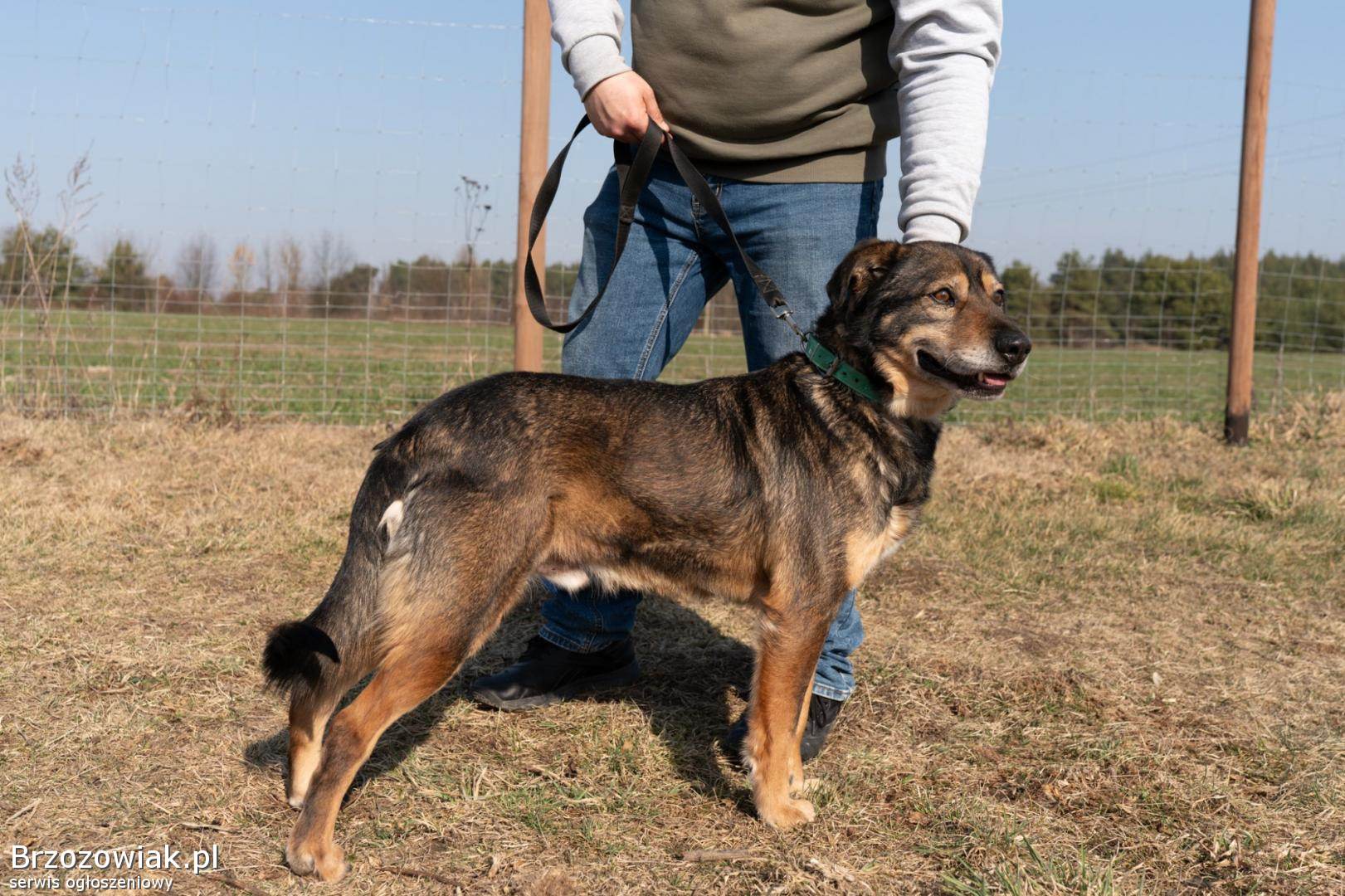 Psiak jest bardzo przyjazny do człowieka, taka duża przylepa, która pcha się na kolana. Za kontakt z człowiekiem oddałby wszystko. Ma w sobie to coś co ujmuje. Umie chodzić na smyczy, chociaż jeszcze w pierwszej fazie spaceru ciągnie.