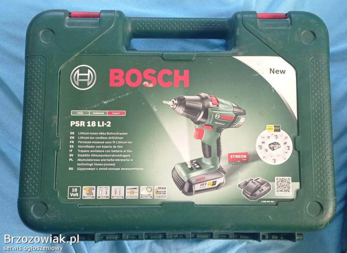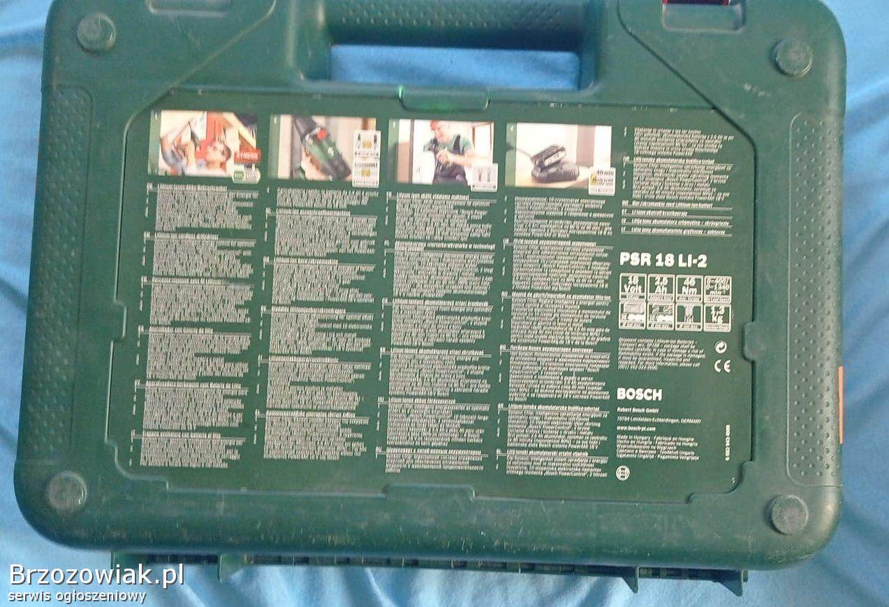 TyczynProfesjonalny wiertarko-wkrętarka Bosch GSR 14, 4-2-LI z zestawem akcesoriów - 2 akumulatory, ładowarka oraz walizka. Narzędzie jest w stanie używanym, ale w pe