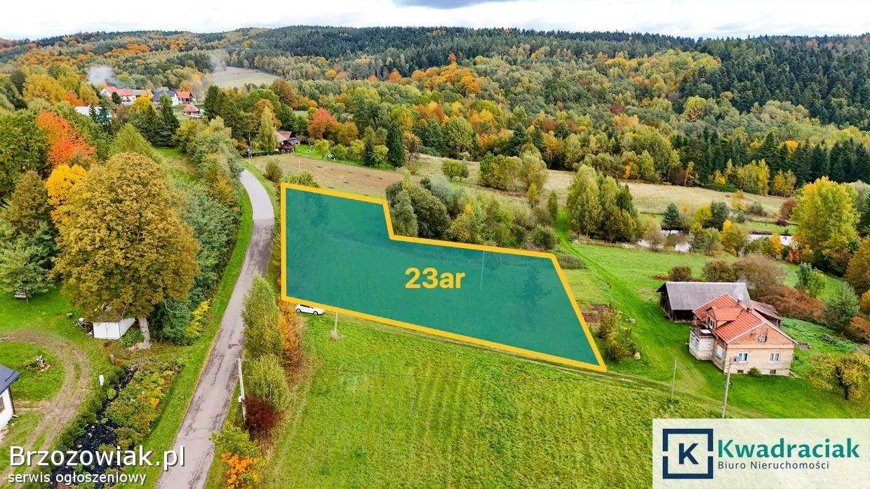 Oferujemy na sprzedaż widokową działkę o powierzchni ok. 23 ar, położoną w miejscowości Bratkówka (gmina Odrzykoń), w cichej, zielonej okolicy z niewielką liczbą sąsiadów. Parcela usytuowana na lekko nachylonym stoku z pięknym, szerokim widokiem na okoliczne lasy i wzniesienia – idealne miejsce dla osób szukających spokoju i kontaktu z naturą.