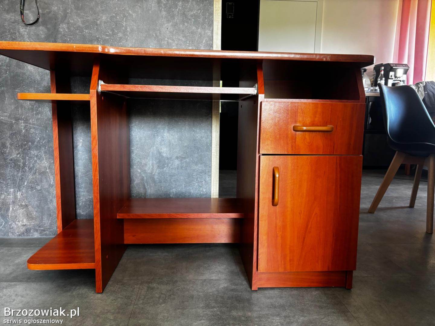 Biurko w brązowym kolorze, posiada ślady użytkowania, ale myślę, że wciąż spełnia swoją funkcję mimo rysek. Wciąz sprawne zawiasy, szuflada. Zapraszam do kontaktu najlepiej sms lub telefonicznie. Odbiór osobisty. Możliwość negocjacji ceny