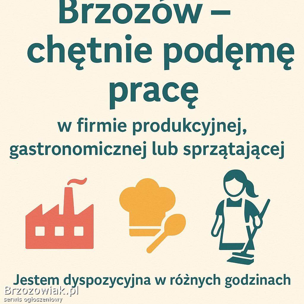 BrzozówDzień dobry, Jestem kobietą, w wieku 60 lat i szukam pracy na terenie Brzozowa, w której mogłabym wykorzystać swoje doświadczenie i pomóc w codziennych obowi