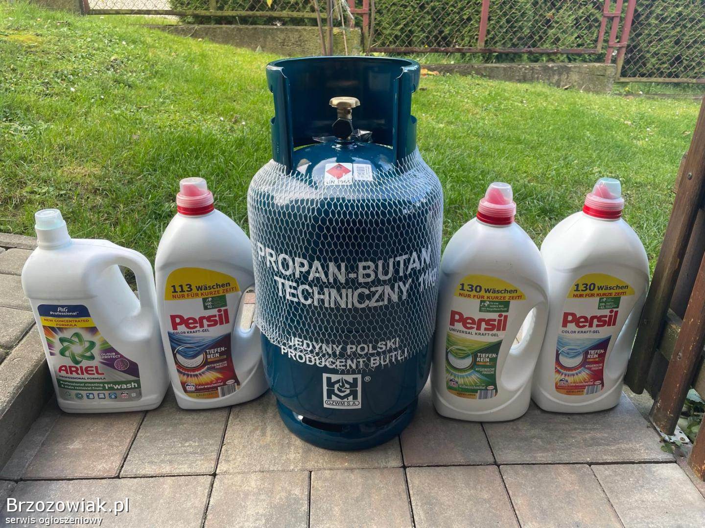 Sprzedam NOWĄ butlę na gaz 11KG. W gratisie zapasowa uszczelka. Cena pustej to 240zł. Jeżeli kupisz ją u mnie mogę zagwarantowywać, że pozostanie u Ciebie ponieważ oferuję usługę wymiany z tej, którą kupisz na nową. lub uzupełnienie butli gazem. Pustą butlę mogę wysłać lub dostarczyć pod wskazany adres. Zamiast pobierać pieniądze za dowóz oferuję sprzedaż żeli do prania. Ariel do koloru 5L. za 50zł, Persil do koloru lub uniwersalny 5, 65L za 55zł, Persil do koloru lub uniwersalny 6L za 65zł.