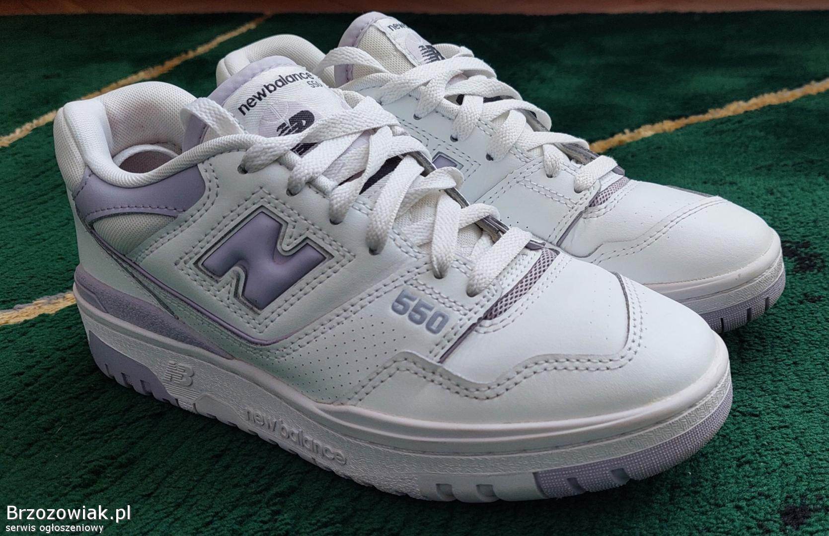 Białe damskie buty New Balance 550 wykonane ze skóry. Rozmiar 38. Długość wkładki 23, 5 - 24 cm. Używane 3-4 razy.