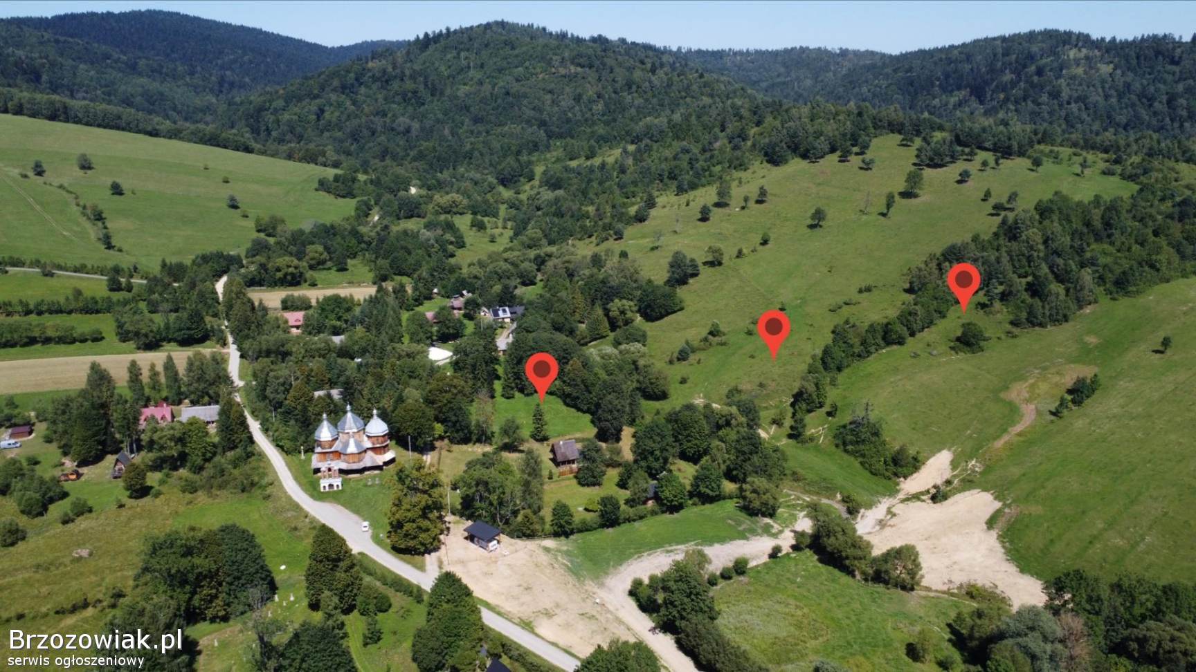 Działka nr 88 w kształcie prostokąta o powierzchni 22ary z dostępem do drogi w pobliżu pięknej zabytkowej Cerkwi. Możliwość wystąpienia o WZ, idealna pod budowę domków letniskowych. Przepiękna spokojna okolica, otoczenie gór, lasów i łąk.