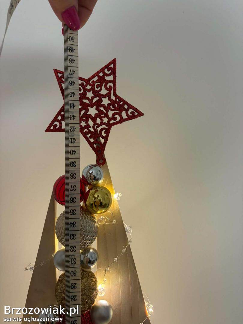 Sprzedam choinkę widoczna jak na zdjęciu. Bardzo starannie zrobiona. Wymiary podane na zdjęciu.