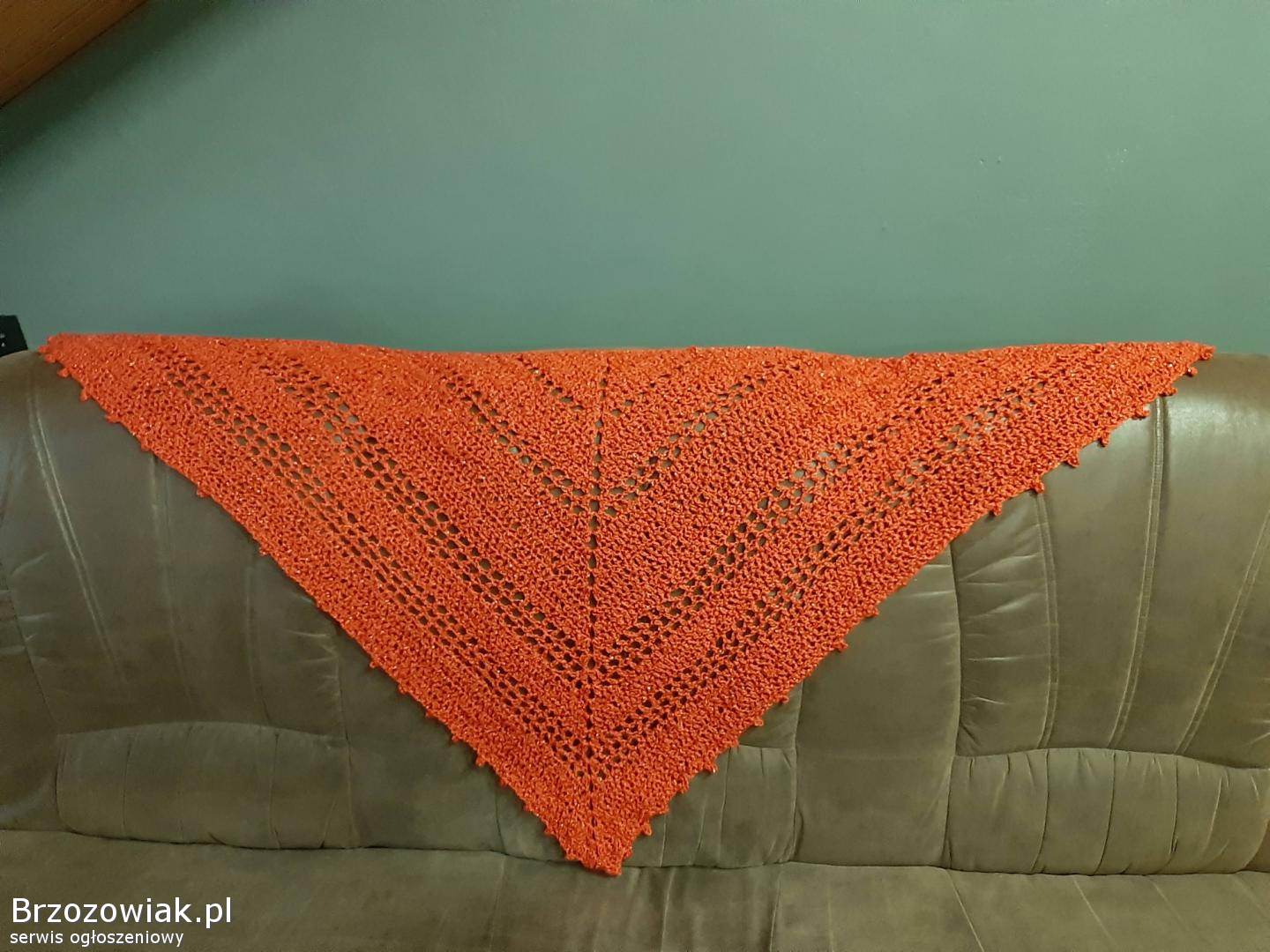 Ażurowa chusta robiona na szydełku.