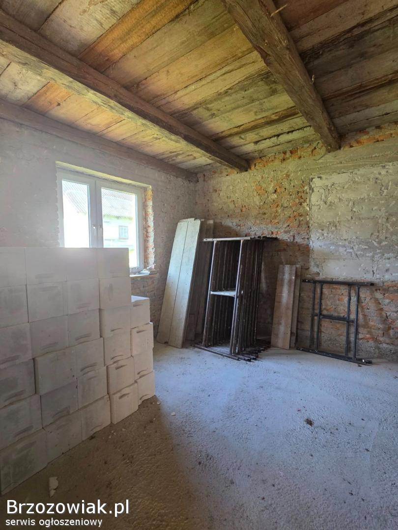 Budynek jednorodzinny na 39arowej działce wraz z budynkiem gospodarczym. Jest to dom murowany w trakcie przebudowy o docelowej powierzchni użytkowej 139, 04m2. Budynek nie jest podpiwniczony. Gotowy jest już projekt techniczny oraz architektoniczno-budowlany. Przedmiot inwestycji: ‘Rozbudowa, nadbudowa i przebudowa budynku mieszkalnego jednorodzinnego KAT I w istniejącej zabudowie zagrodowej. ’ Stanowi to duży atut dla przyszłego inwestora przez oszczędność czasu który zabierają załatwienia urzędowe. Budynek gospodarczy stanowi dodatkową przestrzeń użytkową, którą można wykorzystać jako garaż, warsztat lub kolejną inwestycję. Media: prąd, kanalizacja i wodociąg. Istnieje możliwość przyłączenia do sieci gazowej.