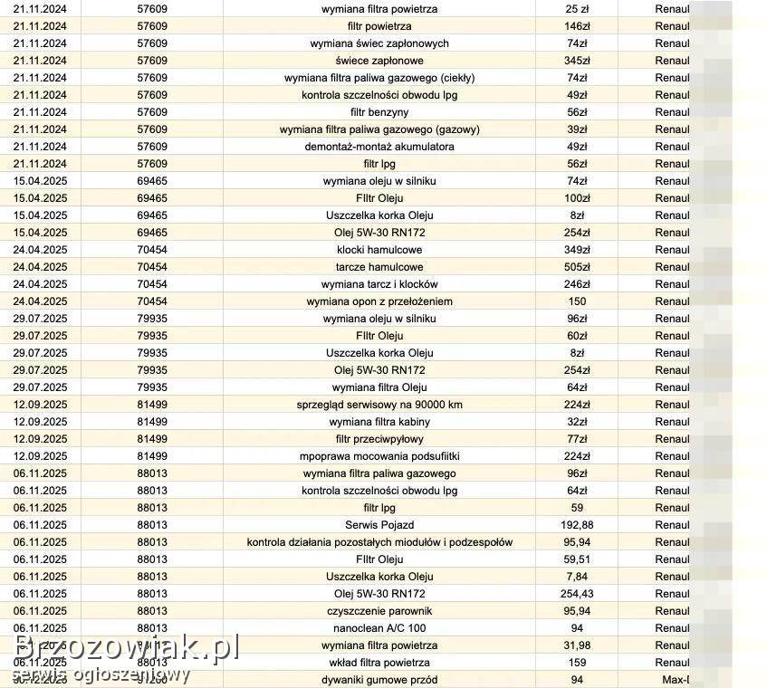 - 12 stycznia 2026 akumulator i pióra wycieraczek wymienione w ASO na nowe