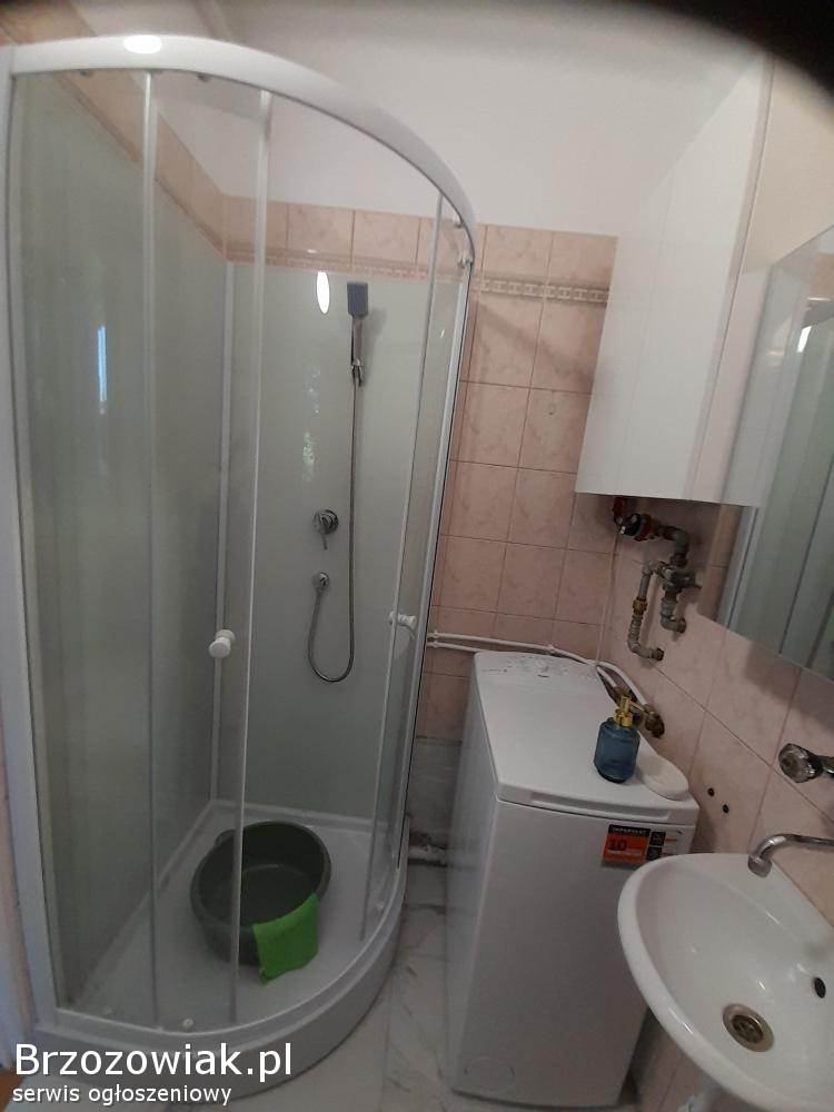 - w łazience: umywalka, lustro, WC, szafka wisząca oraz nowa pralka i kabina prysznicowa