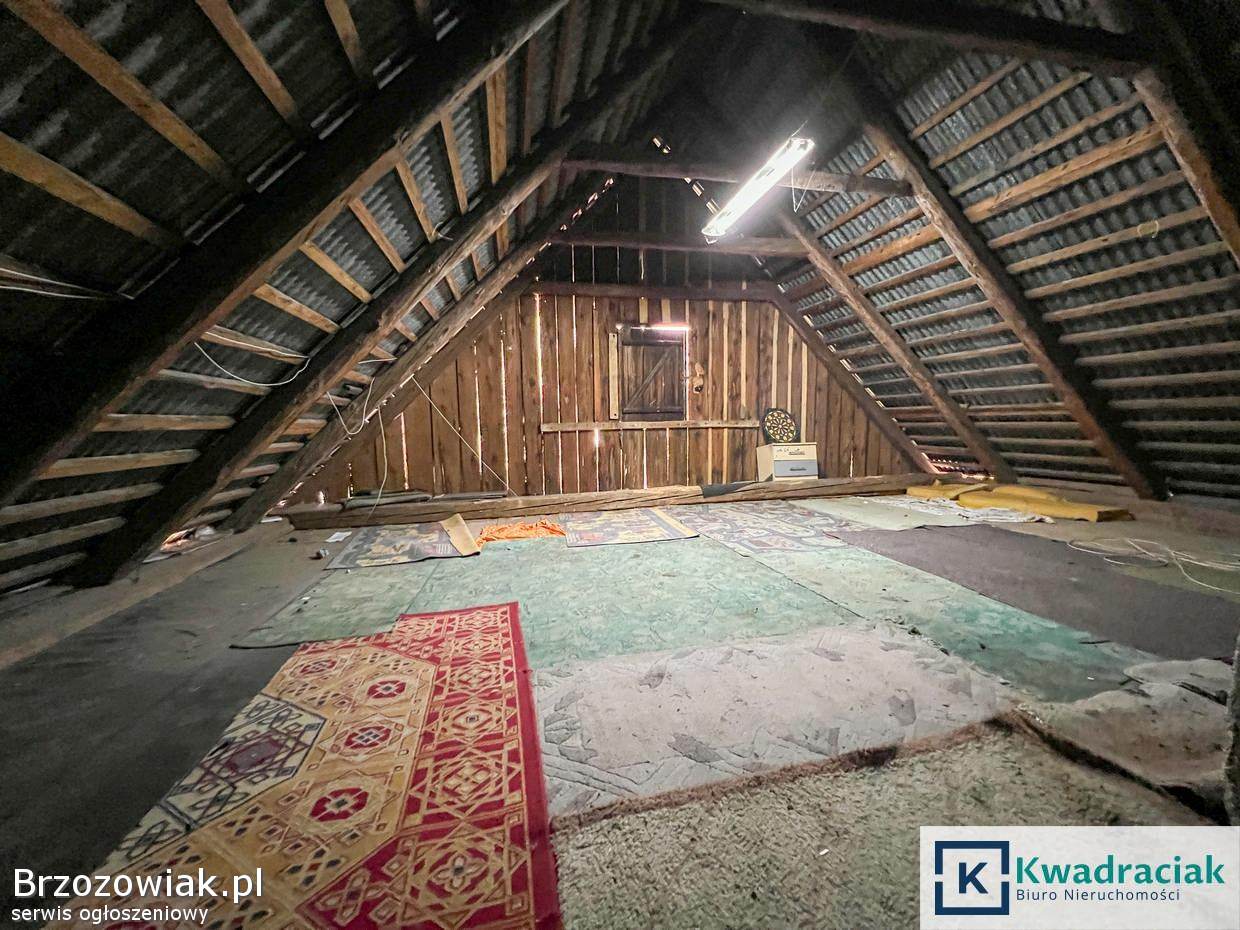 Nieruchomość stanowi parterowy budynek mieszkalny z poddaszem do adaptacji, co daje możliwość powiększenia przestrzeni użytkowej według własnych potrzeb. Aktualny układ pomieszczeń obejmuje trzy ustawne pokoje, kuchnię, łazienkę oraz przedpokój, co pozwala na wygodną organizację przestrzeni dla rodziny. Dach budynku został pokryty blachą. Dodatkową przestrzeń stanowi garaż.