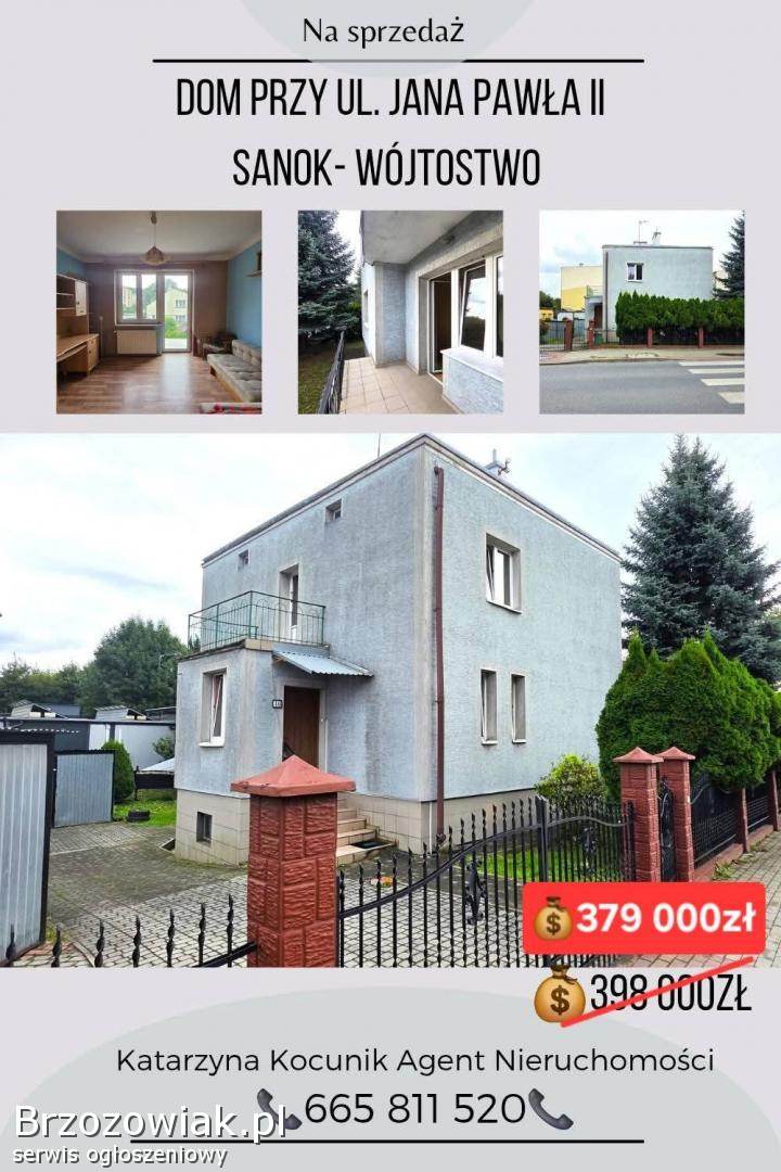 Na sprzedaż dom w Sanoku na Wójtostwie przy ul. Jana Pawła II. Jest to budynek mieszkalny o powierzchni użytkowej 96m2 na ogrodzonej 5 arowej działce. Budynek jest murowany, ocieplony. Około 25 lat temu odbył się remont. Wymieniono instalacje (oprócz elektrycznej), okna PCV i zamontowano ogrzewanie gazowe. Dom jest w całości podpiwniczony. Strych do zaadaptowania. Działka uzbrojona we wszystkie media. Na działce dodatkowo znajdują się 3 garaże blaszaki, aktualnie wynajmowane.