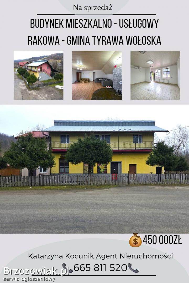 Na sprzedaż nieruchomość w miejscowości Rakowa w gminie Tyrawa Wołoska. Jest to murowany budynek mieszkalno - usługowy, parterowy z poddaszem użytkowym. Łączna powierzchnia użytkowa budynku to 169, 2m2 na działce o powierzchni 556m2.