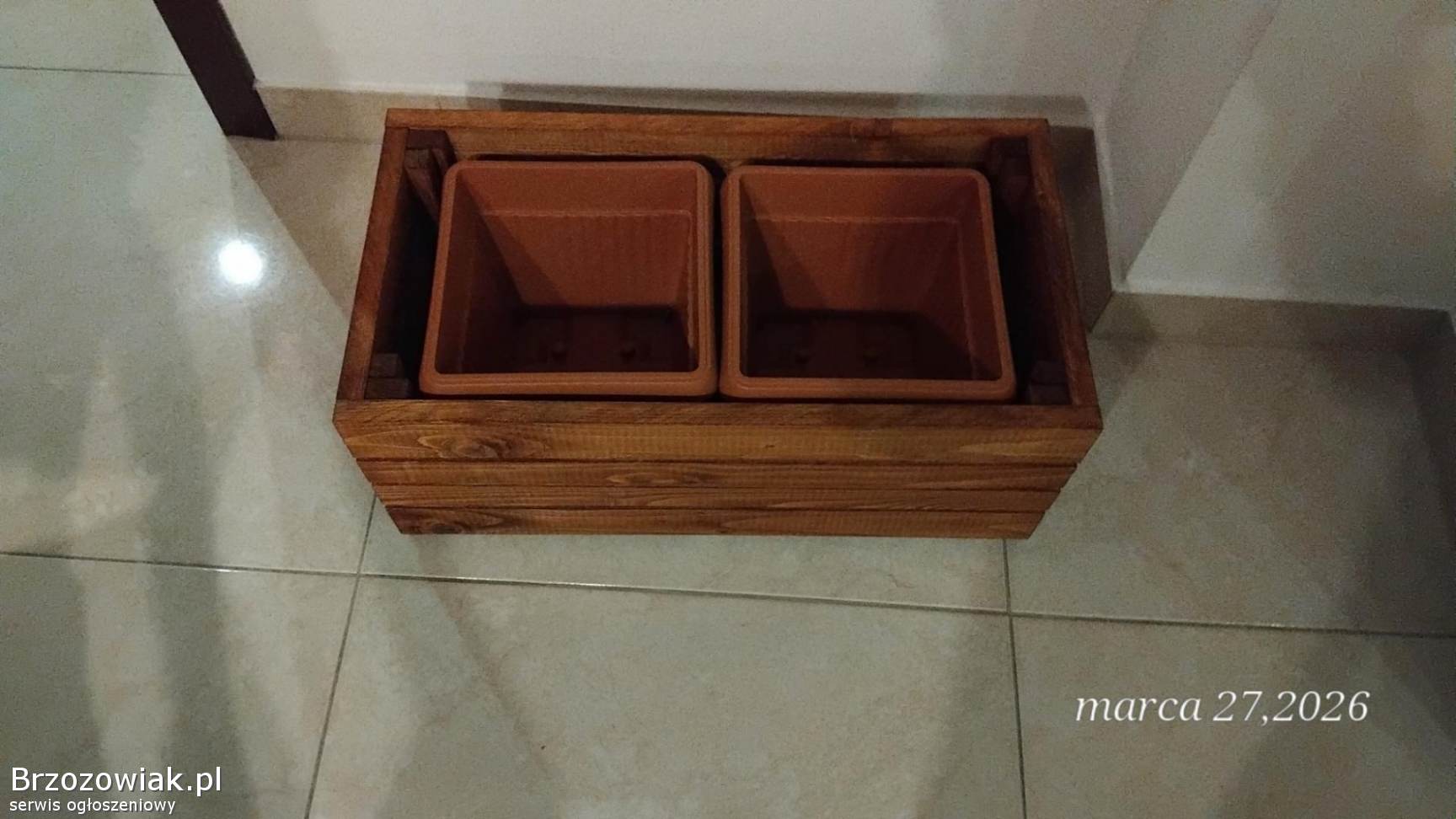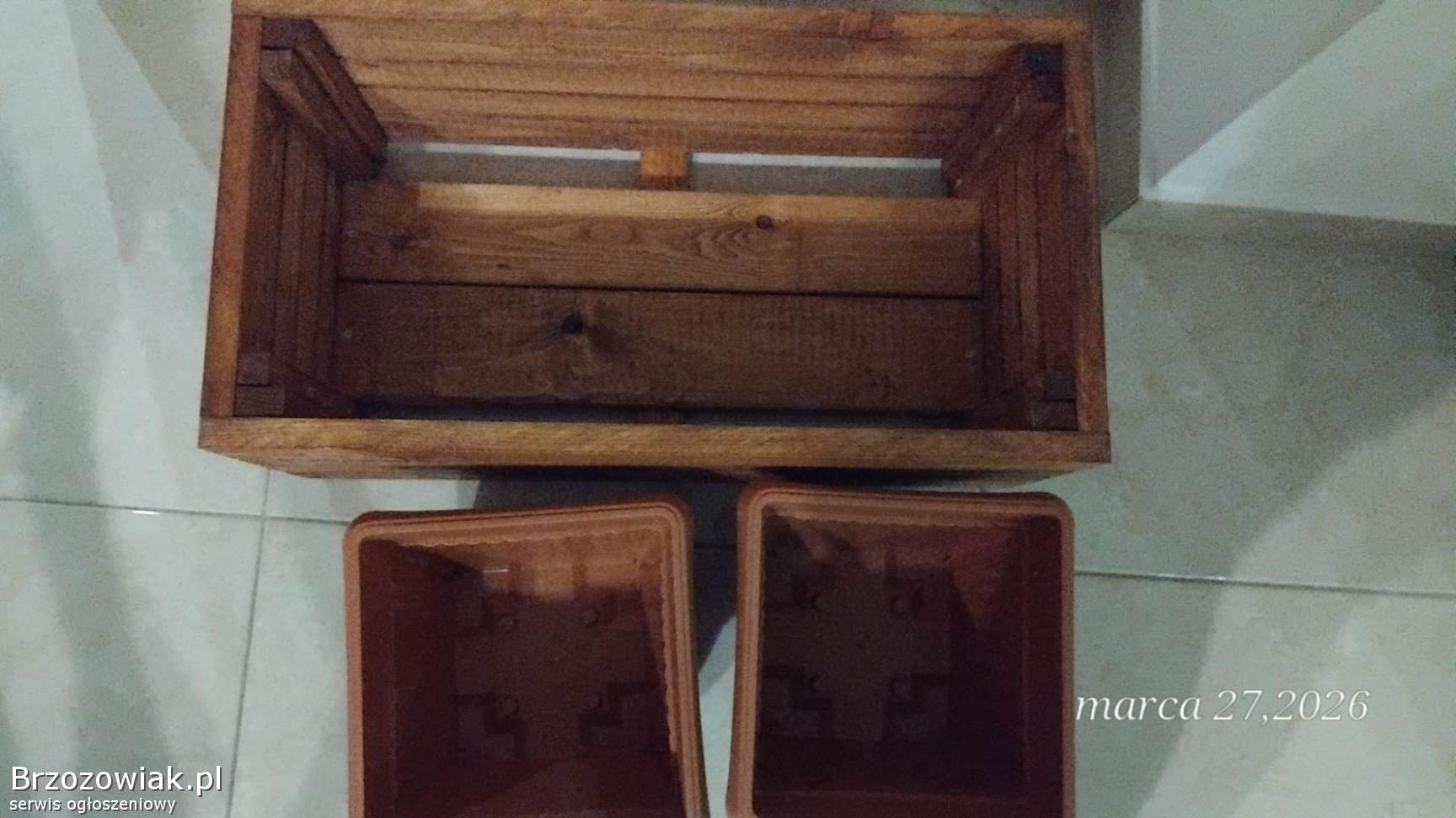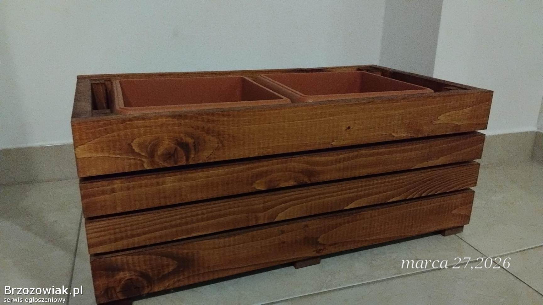 Donica Z 2 wkładami dł. 58x szer 31x wys 25. Kolor orzech. Wkłady w zestawie. Malowana na kolor orzech