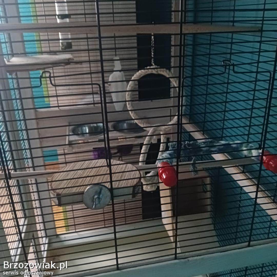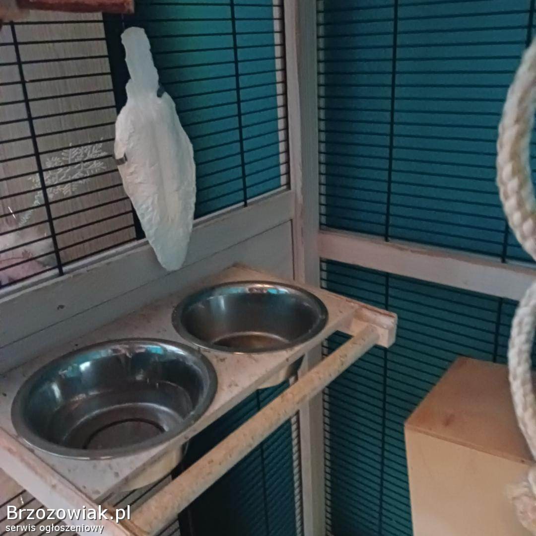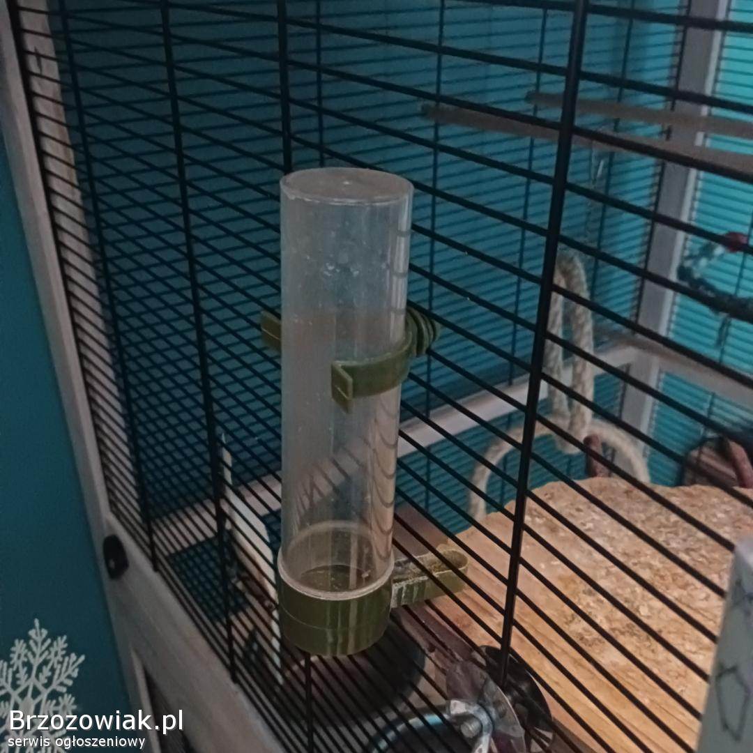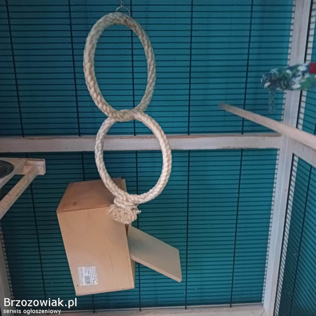 Drewniana klatka dla ptaków dużych i małych - używana - o wymiarach Szerokość 76, 5 cm, wysokość 153 cm, głębokość 82 cm. Z wyposażeniem m. in. : obrotowa stacja karmienia, dozownik wody, wyciągana szuflada na piasek w celu ułatwienia czyszczenia, regulowane 3 grzędy i wiele innych widocznych na zdjęciach.