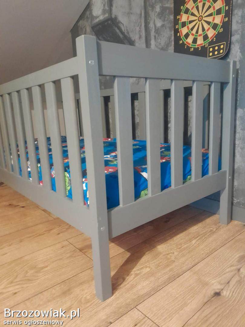 Drewniane łóżko 180 z materacem i wysoką barierką