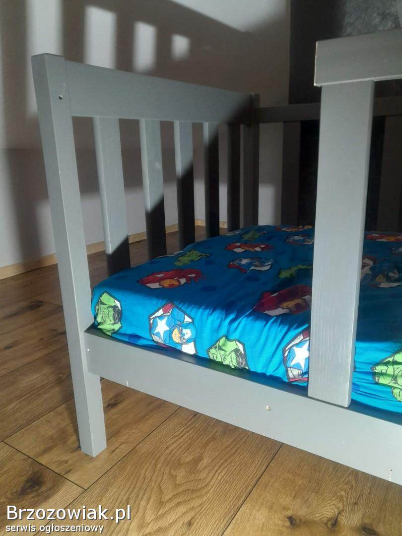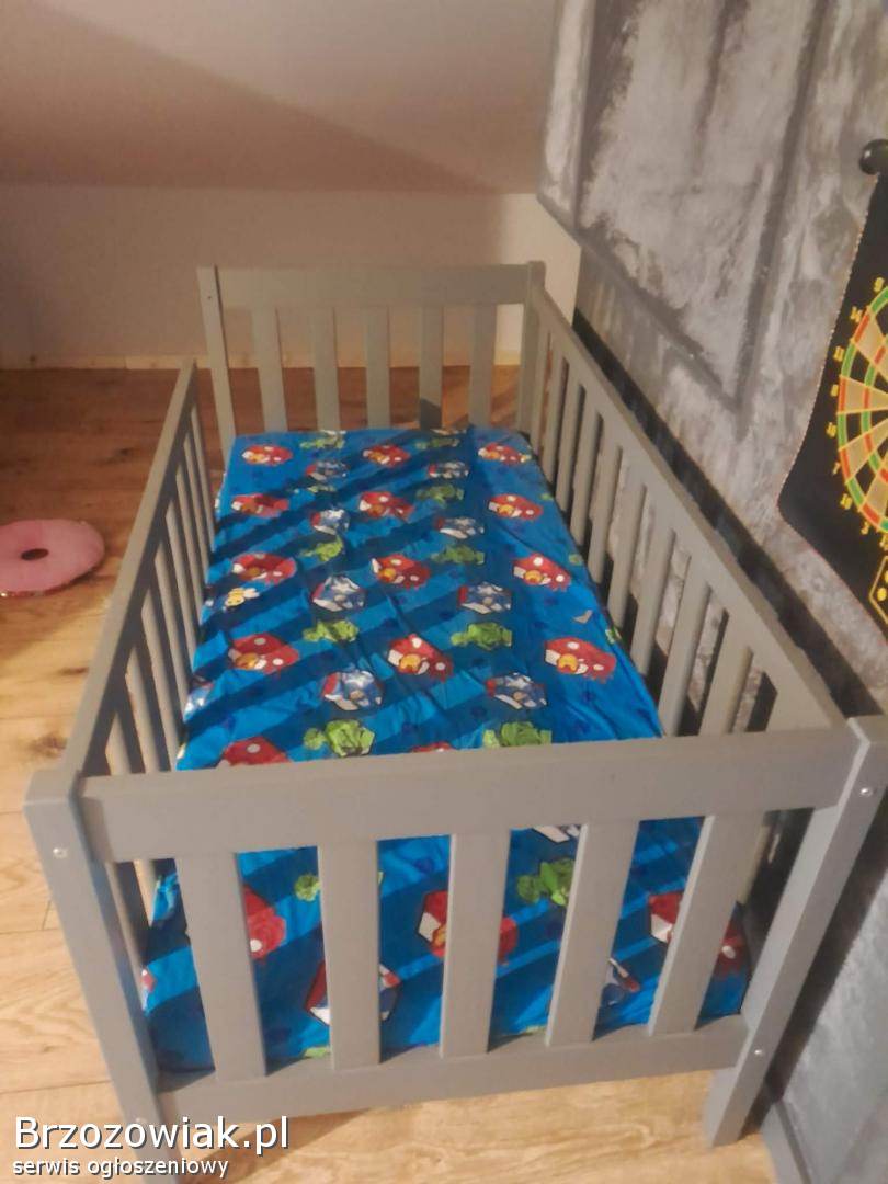 Sprzedam drewniane łóżko dla dziecka o wymiarze 180 cm z materacem I wysoką barierką. Wysokość 85 cm szerokość 88 cm