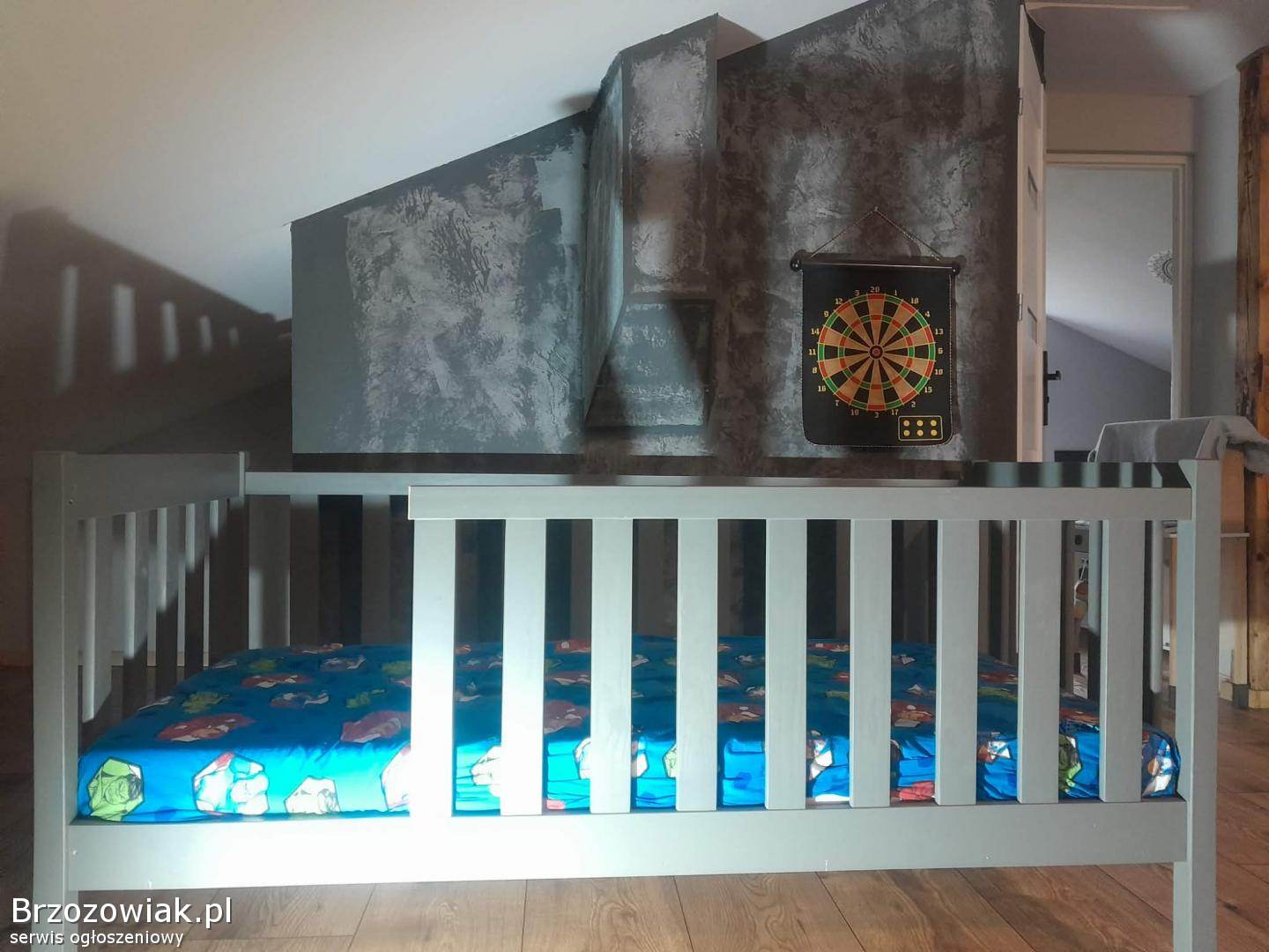 ogłoszenia ) dla dzieci ) sprzedam ) Drewniane łóżko 180 z materacem i wysoką barierką
