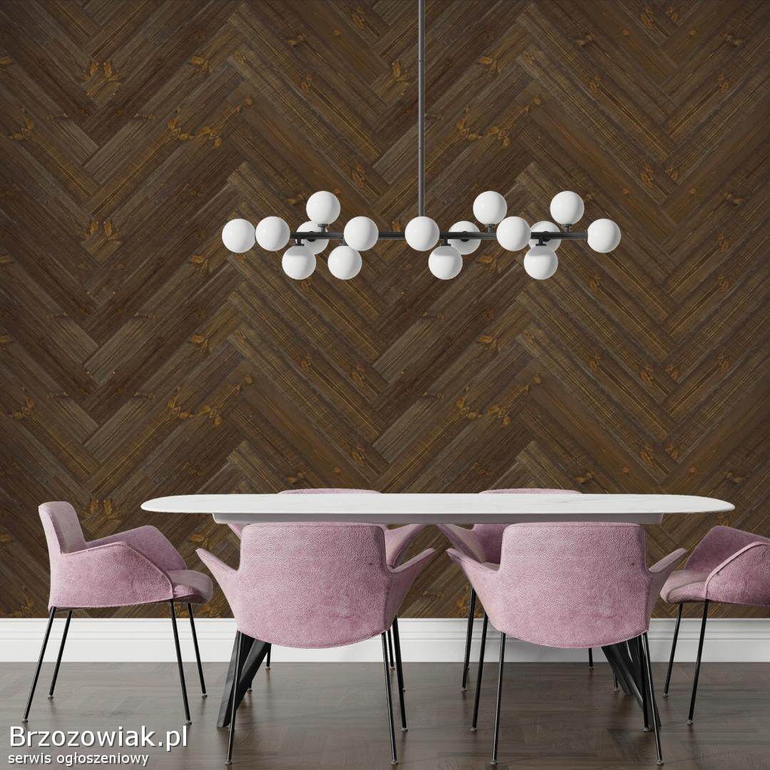 Subtelne brązowe i złociste akcenty drewna sprawiają, że panele CORTE doskonale harmonizują z różnorodnymi aranżacjami – od nowoczesnych, przez industrialne, aż po klasyczne przestrzenie. Ułożenie desek w jodełkę wprowadza elegancję i dynamikę, tworząc spójną grę linii i faktur, która nadaje ścianie centralny punkt dekoracyjny.