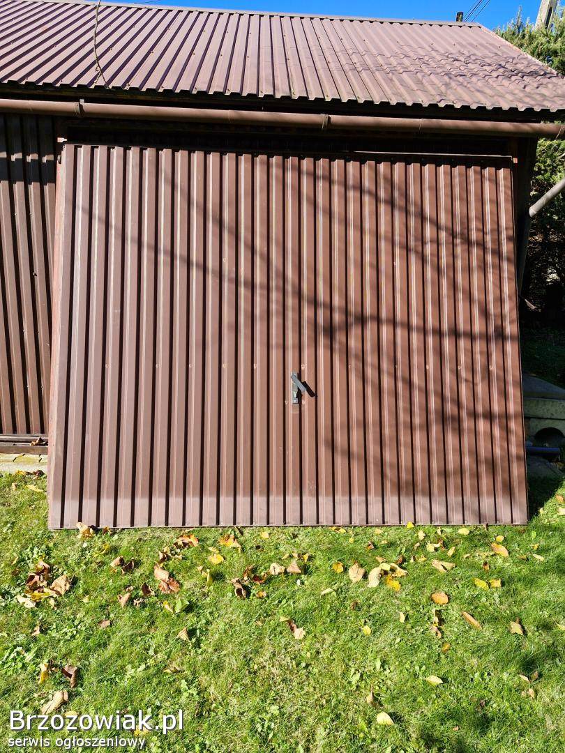 Sprzedam drzwi garażowe uchylne z blachy trapezowej łącznie z futryną i zamkiem w dobrym stanie po demontażu. Wymiary wewnętrzne futryny stalowej: szer. 2, 30 m, wys. 1, 9 m.