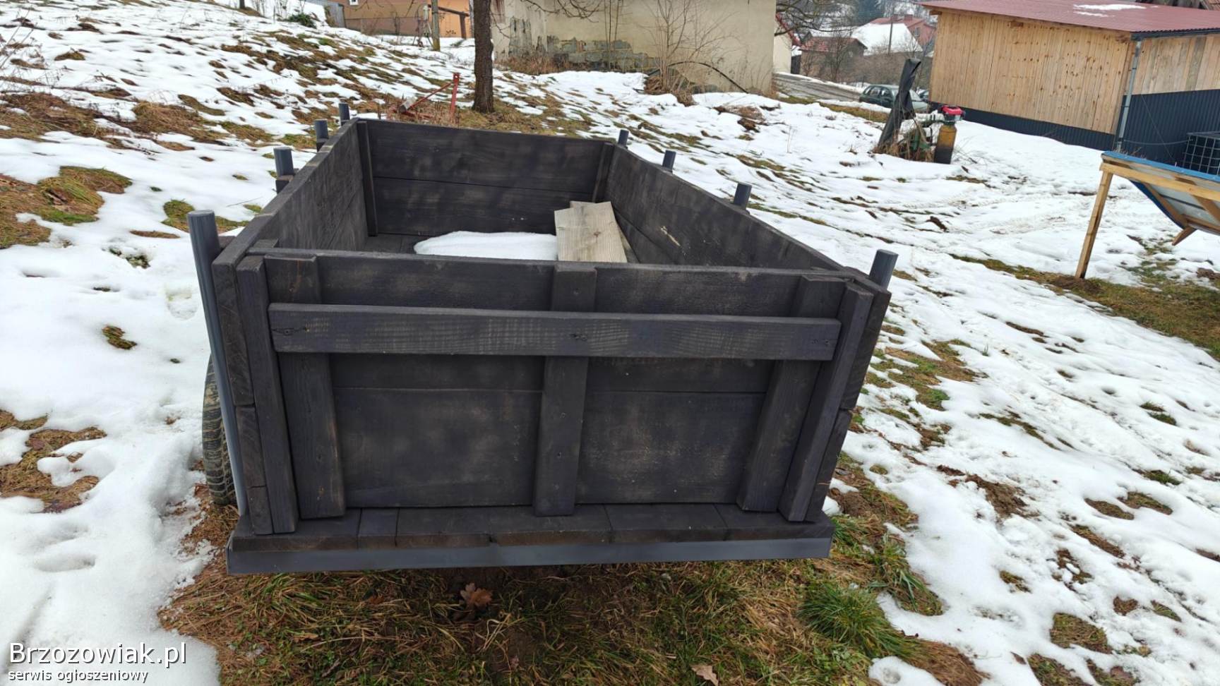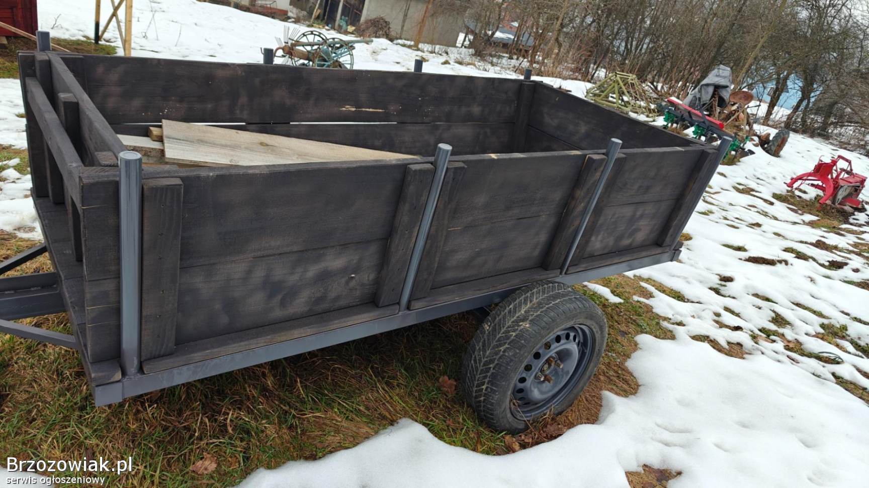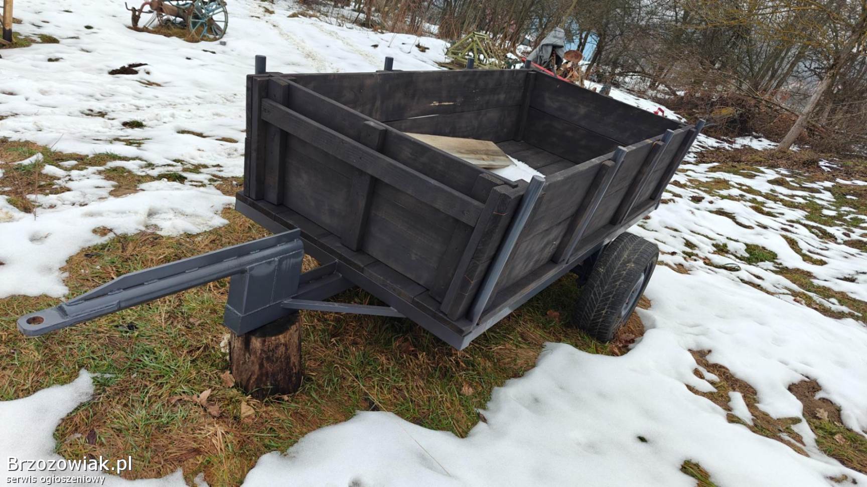 Posiadam przyczepkę wykonana z nowego materiału wraz z burtami. Całość solidnie wykonana oraz pomalowana i zaimpregnowana. Wymiary to szer 110cm a dł. 260cm. Przyczepka jest na kołach R16