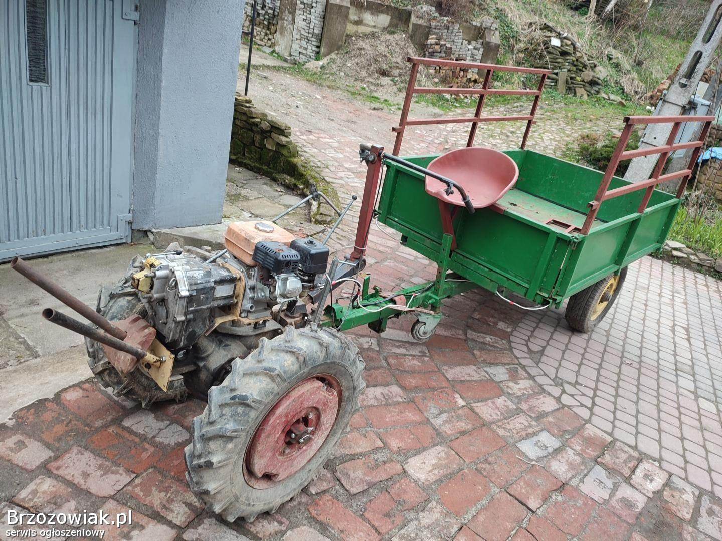 Przedmiotem sprzedaży jest dwukołowy ciągnik RJS - 1 tzw. DZIK z silnikiem czterosuwowym, z blokadą osi i wałkiem mocy. W zestawie posiada : przyczepę ze światłami, glebogryzarkę, pług do orki, płużek do ziemniaków, wywrotnice do montażu glebogryzarki oraz obciążniki na koła. Stan jak na zdjęciach. W razie pytań proszę dzwonić na podany numer telefonu.