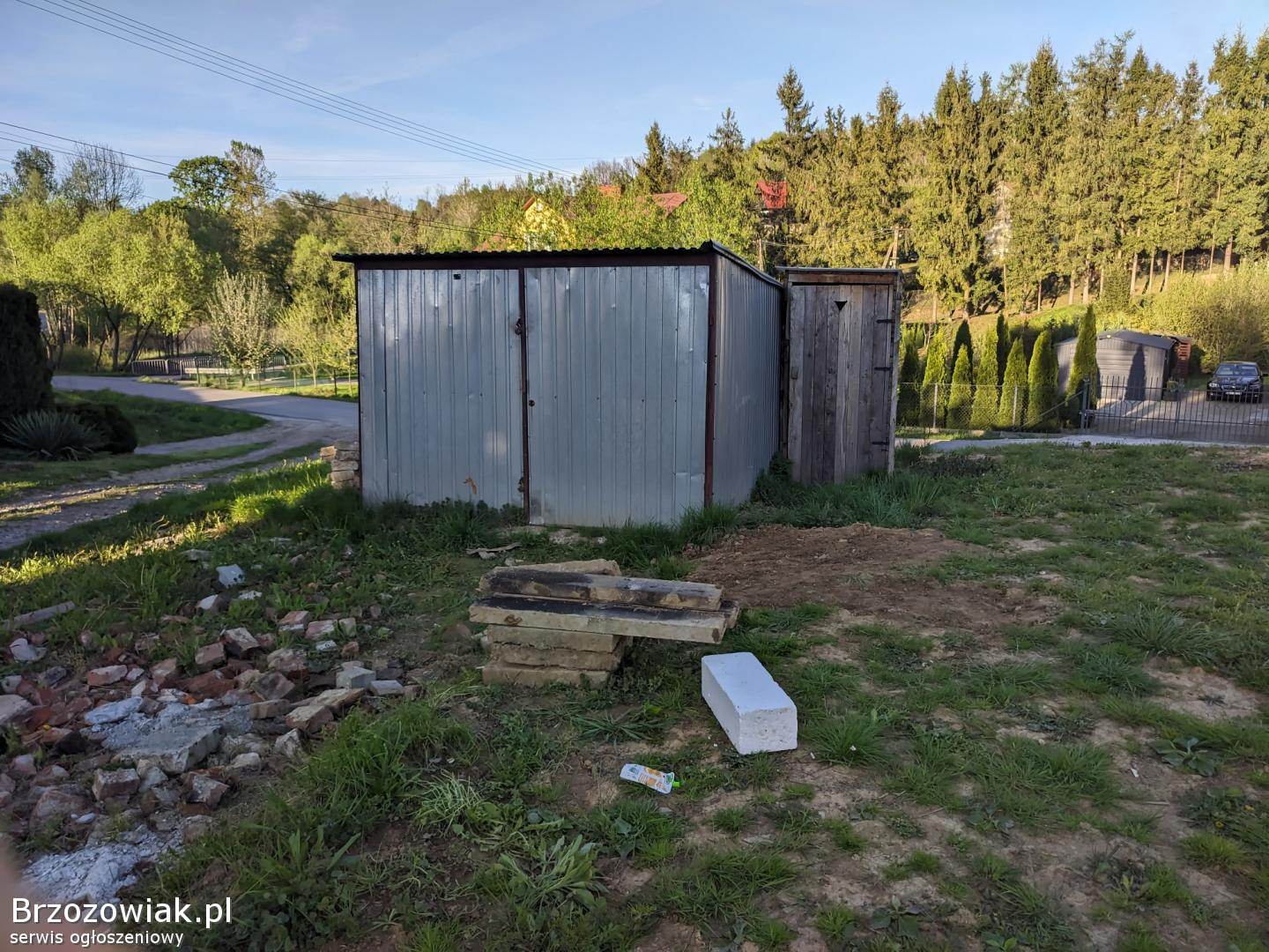 Cena obejmuje zakup działki z garażem blaszanym i dużą altaną.