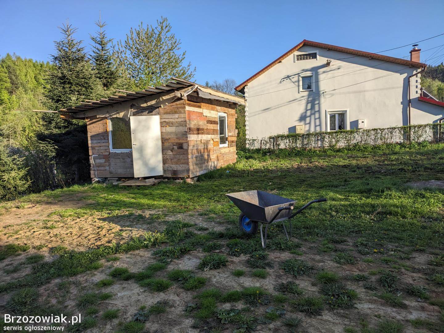Sprzedam działkę budowlaną bezpośrednio od właściciela w Zahutyniu 13, 13 ara z blaszanym garażem i dużą altaną. Cena: 118 tys. zł do niewielkiej negocjacji Me