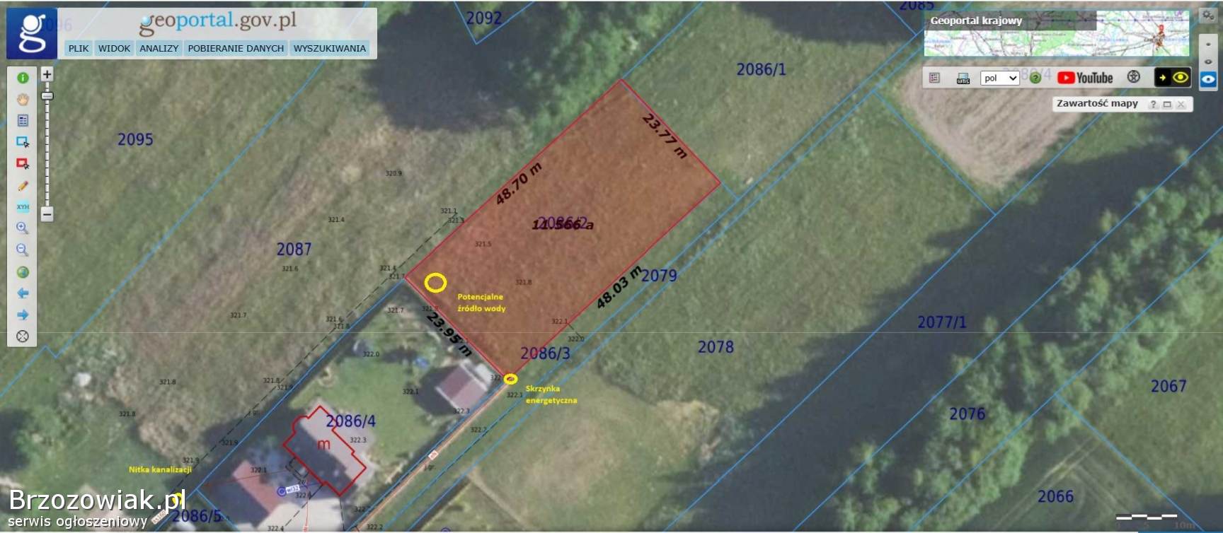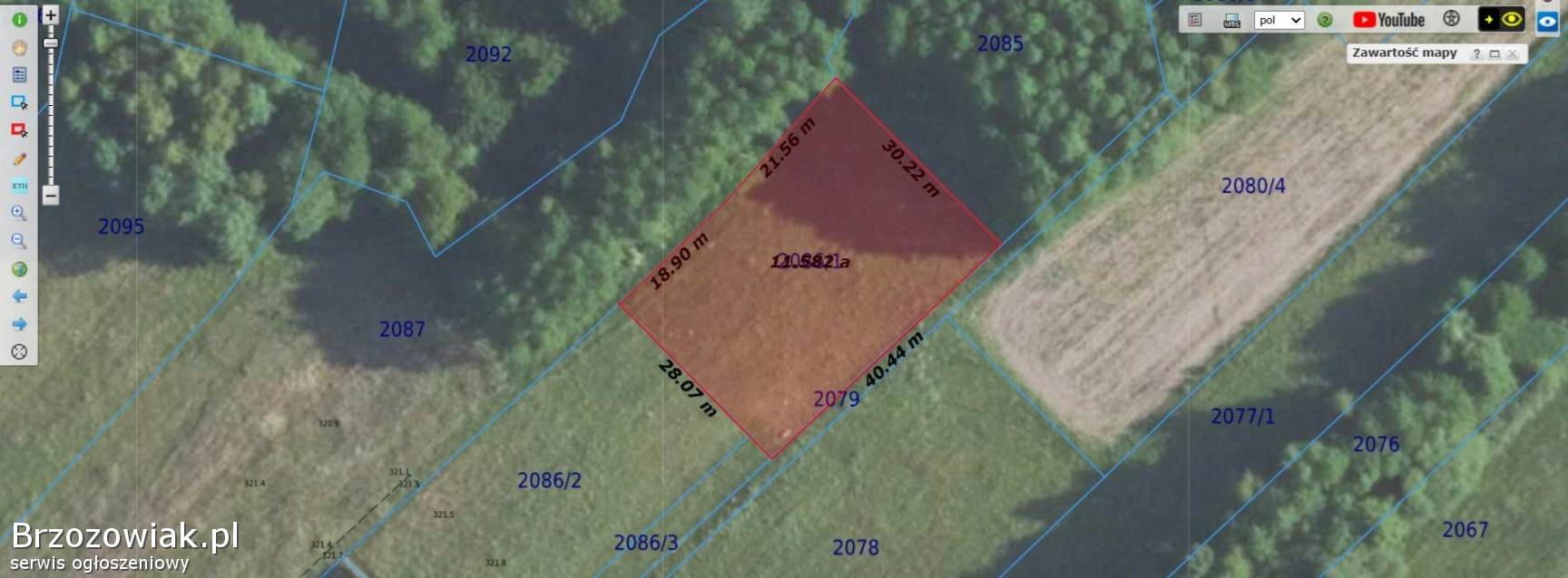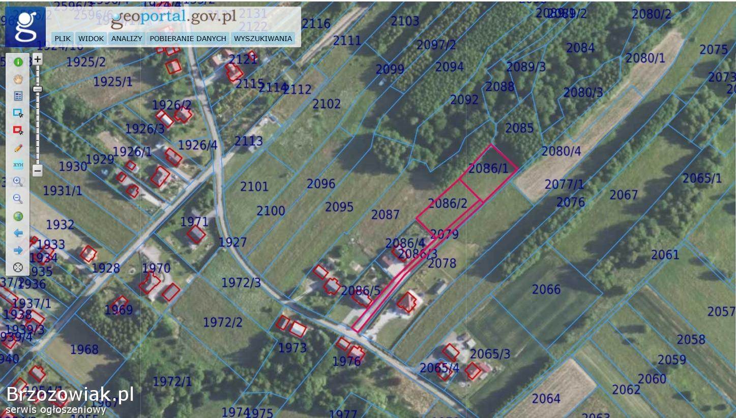 Działka o nr 2086/1, pow. 11, 5 ar, klasa gruntu IVa.