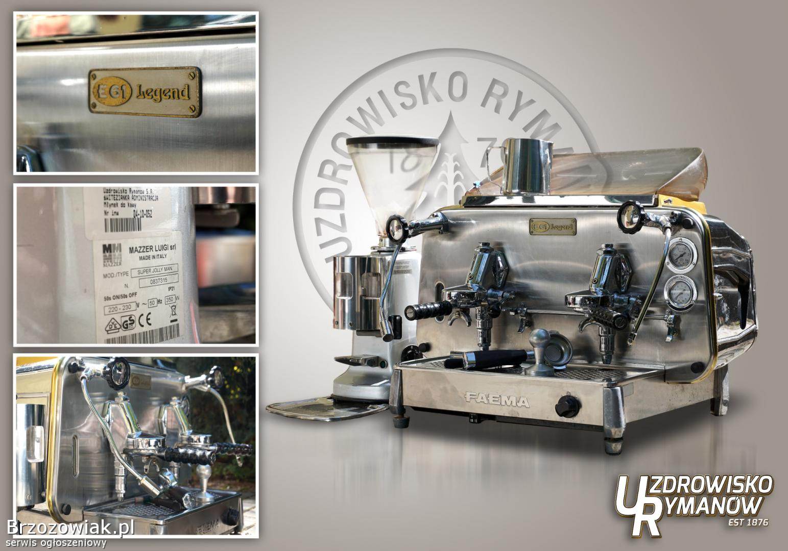 FAEMA E61 Legend - ekspres 2 kolbowy z osprzętem jak na załączonych zdjęciach (3 kolby, ubijak do kawy, naczynie do spieniania mleka) oraz młynka do kawy (sprawny - niekompletny). Urządzenia i osprzęt używany, ok. 10 letni, w kwietniu 2024 wykonano serwis. Urządzenia sprawne. Cena wywoławcza 8 000 zł (osiem tysięcy złotych brutto).
