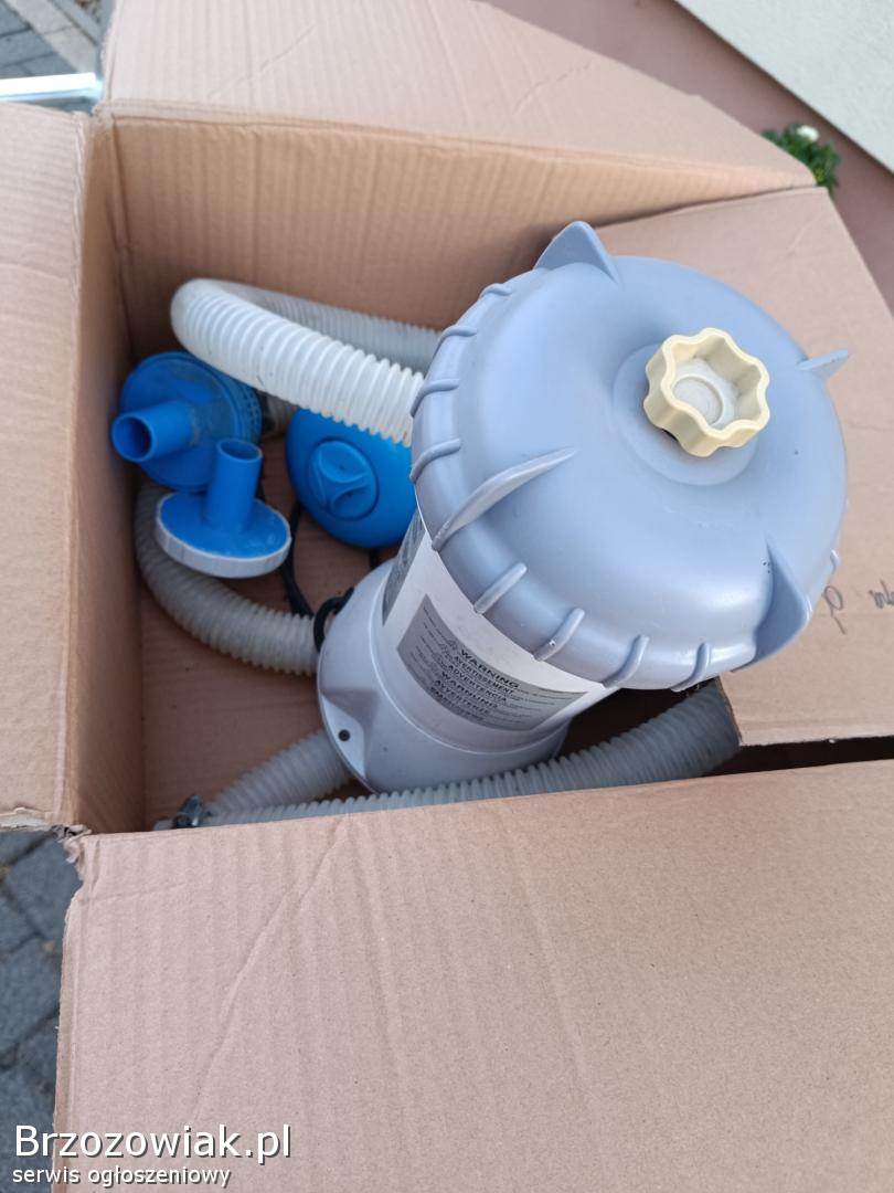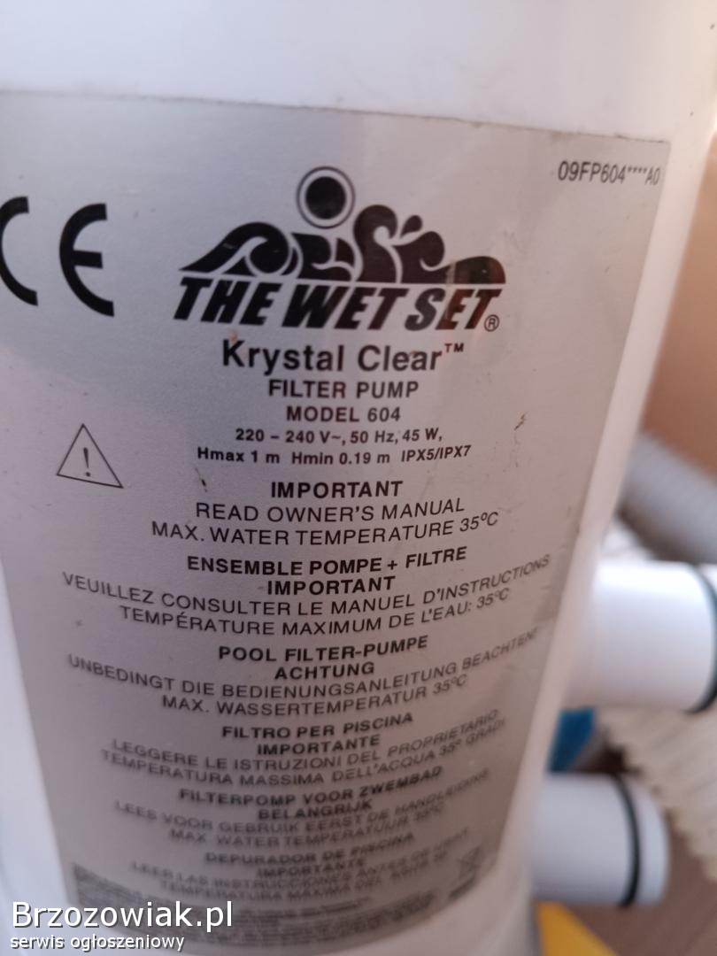 Sprzedam używany sprawny filter basenowy marki ksystal clear 604, to co na zdjęciu rurki końcówki zbiornik na chlor