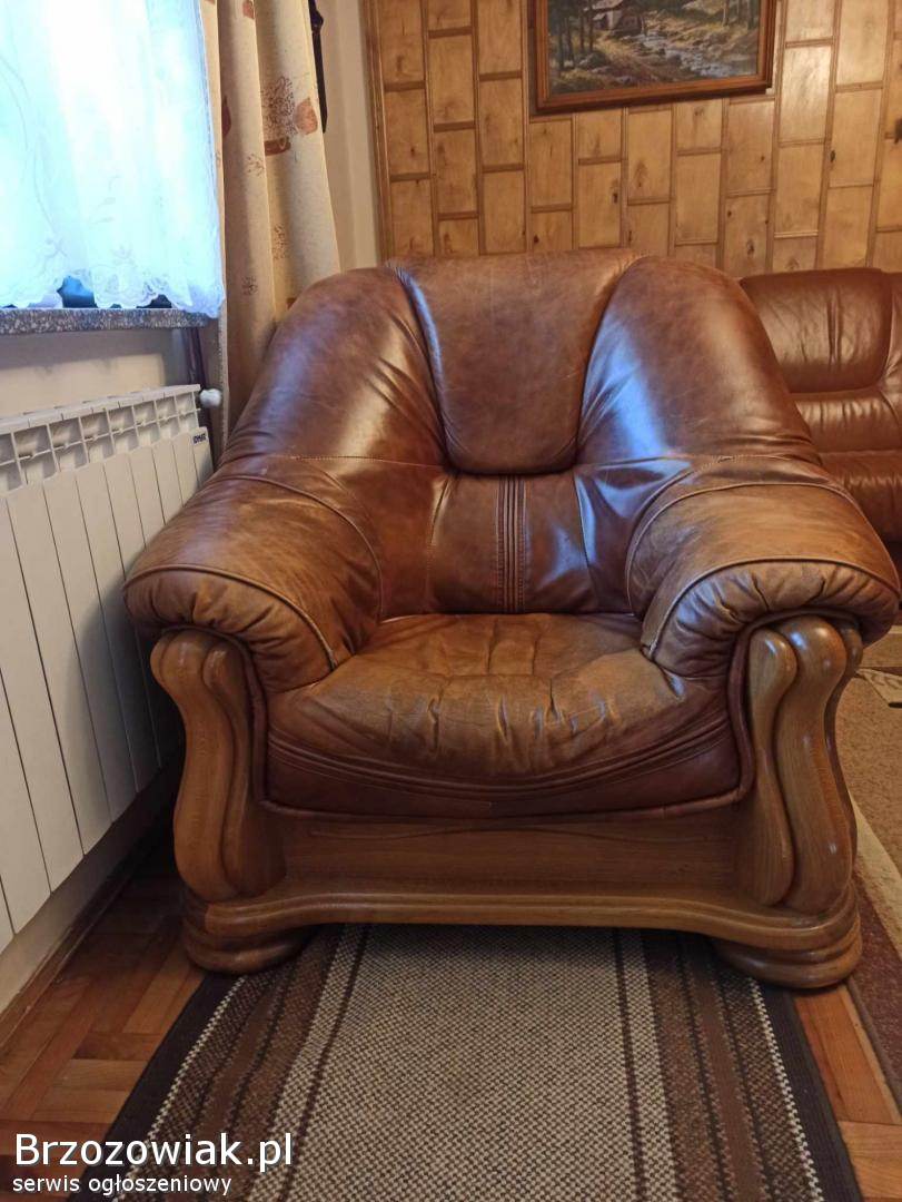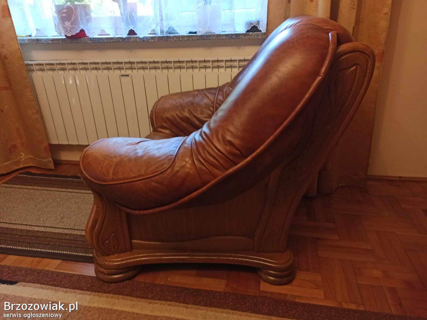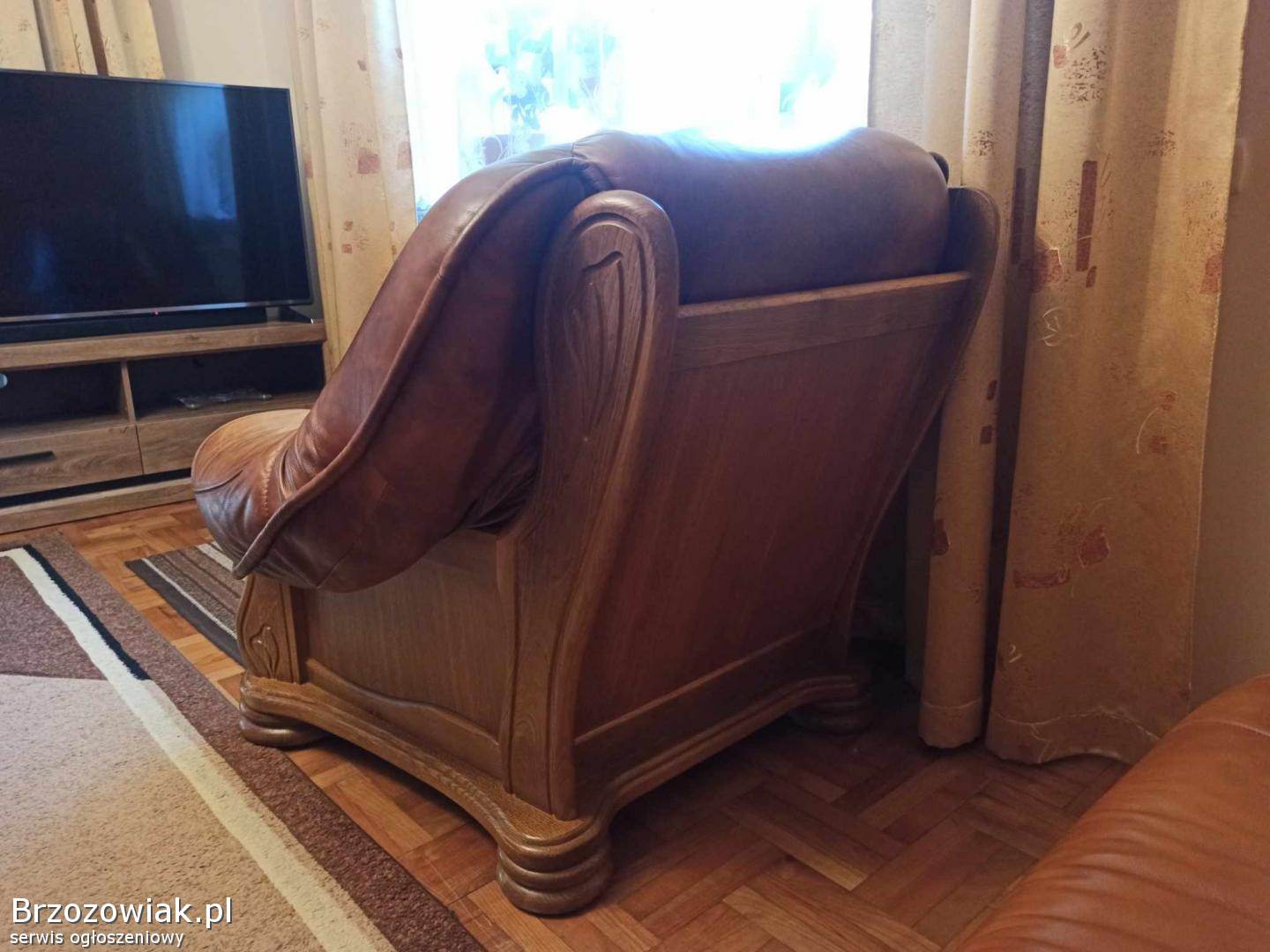 Mam do sprzedania fotel wykonany ze skóry, osadzony na dębowej ramie. Kolor obicia brązowy. Fotel posiada nieznaczne ślady użytkowania. Więcej informacji udzielę telefonicznie.