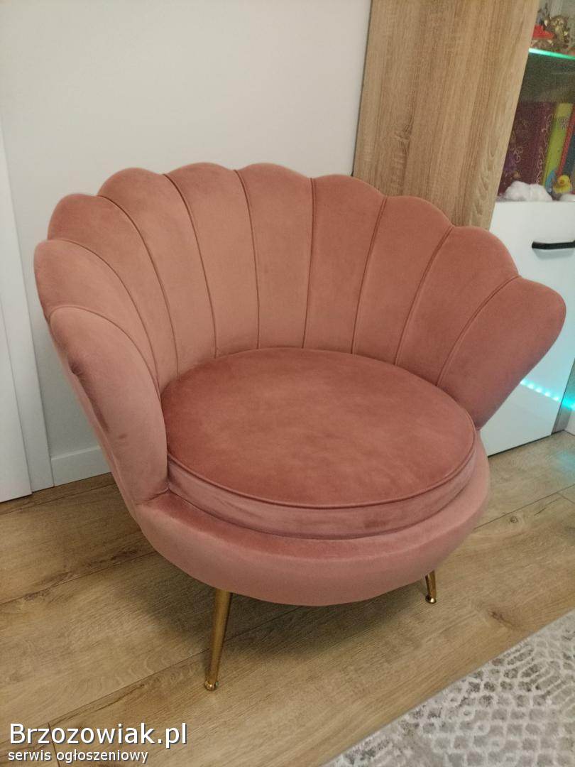 Sprzedam fotel muszelkę w kolorze brudny róż, złote nogi. Fotel w stanie bardzo dobrym.