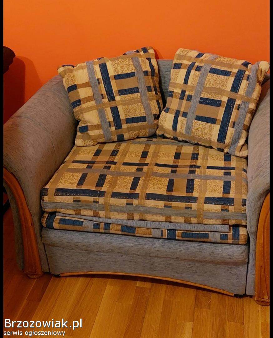 KrosnoSprzedam komplet dwa fotele, wygodne, eleganckie, kolor beż. Mocny materiał. Widać ślady użytkowania. Szerokość siedliska i oparcia 55 cm. Do nich wersalka. Roz