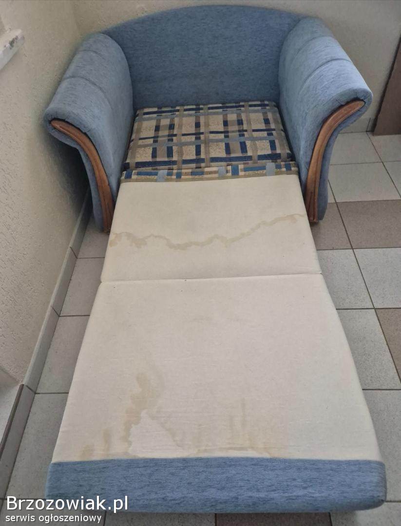Na sprzedaż fotel rozkładany. Ma zacieki po praniu, wysychał na słońcu i takie wyszły plamy. Można ponownie wyprać. Są ślady użytkowania widoczne na zdjęciach. Rozmiary: długość miejsca na spanie 186cm, szerokość 80cm.